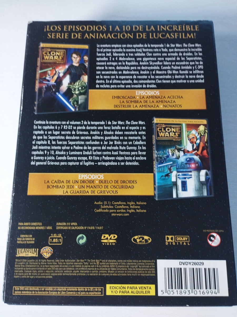 The Clone Wars STAR WARS Season 1 Volumes 1 and 2 - 2 x DVD Spanish English Am