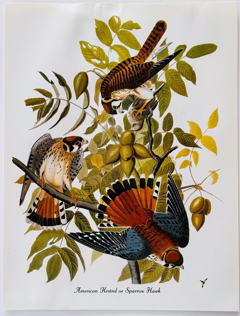 1979 American Kestrel Sparrow Hawk Color Plate Print Audubon Birds America F15J