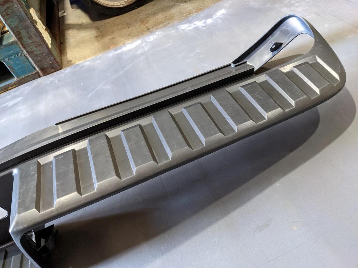 This ad is for an OEM 2014-2018 SILVERADO SIERRA REAR BUMPER SMOOTH SURFACE BLACK UPPER STEP PAD.