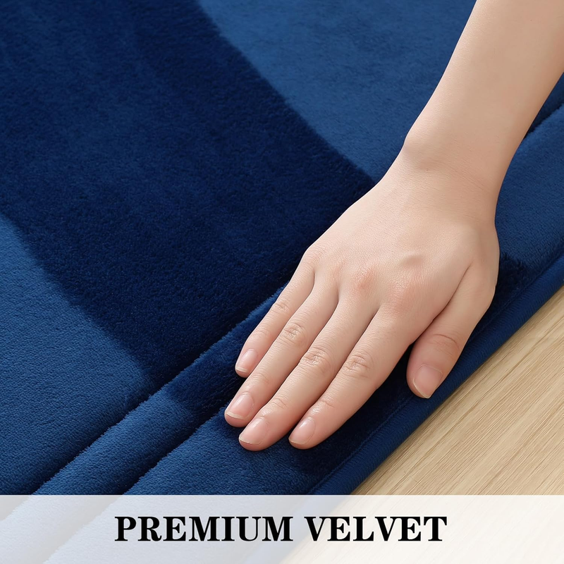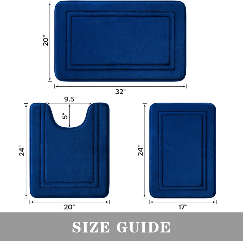Navy Memory Foam Bath Mat, Bathroom Rugs Sets 3 Piece, Non Slip Extra So