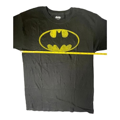 DC Comics Batman Basic Distressed Logo Adult MEDIUM Black Yellow Graphic Shirt