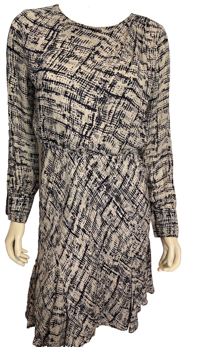 Banana Republic Navy & White Print Long Sleeve Fit & Flare Lined Dress Size XS