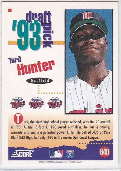 M) 1994 Score Baseball Trading Card - Torri Hunter #640