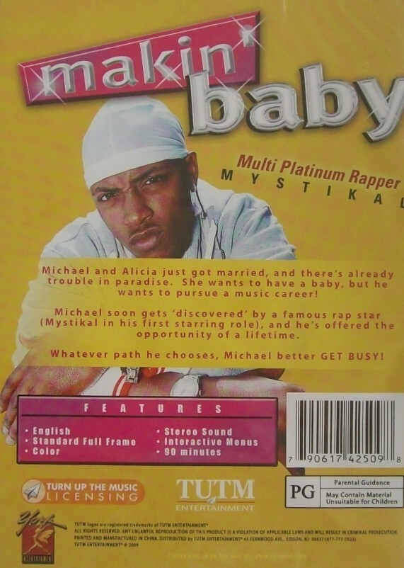 Description of item: Add a unique comedy-drama to your collection with Makin? Baby, featuring rapper Mystikal in his first starring film role. Michael and Alicia are newly married, but trouble hits fast?she?s ready for a baby, while he wants to chase his music dreams. When Michael gets ?discovered? by a famous rapper, he?s offered a once-in-a-lifetime opportunity that could change everything. Now he must choose between family life and fame? and whichever path he chooses, he better get busy!