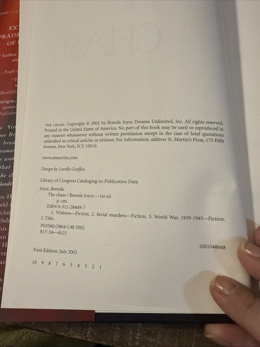 "The Chase" is a gripping hardcover book published by St. Martin's Press in 2002. Written by Brenda Joyce, this fiction novel falls under the genres of thrillers, crime, romance, and mystery. With a revised edition, this 400-page book is English language, making it a captivating read for fans of suspenseful and detective-driven stories. Perfect for those who enjoy a blend of crime and romance, "The Chase" is sure to keep readers on the edge of their seats with its gripping plot and engaging storytelling.
