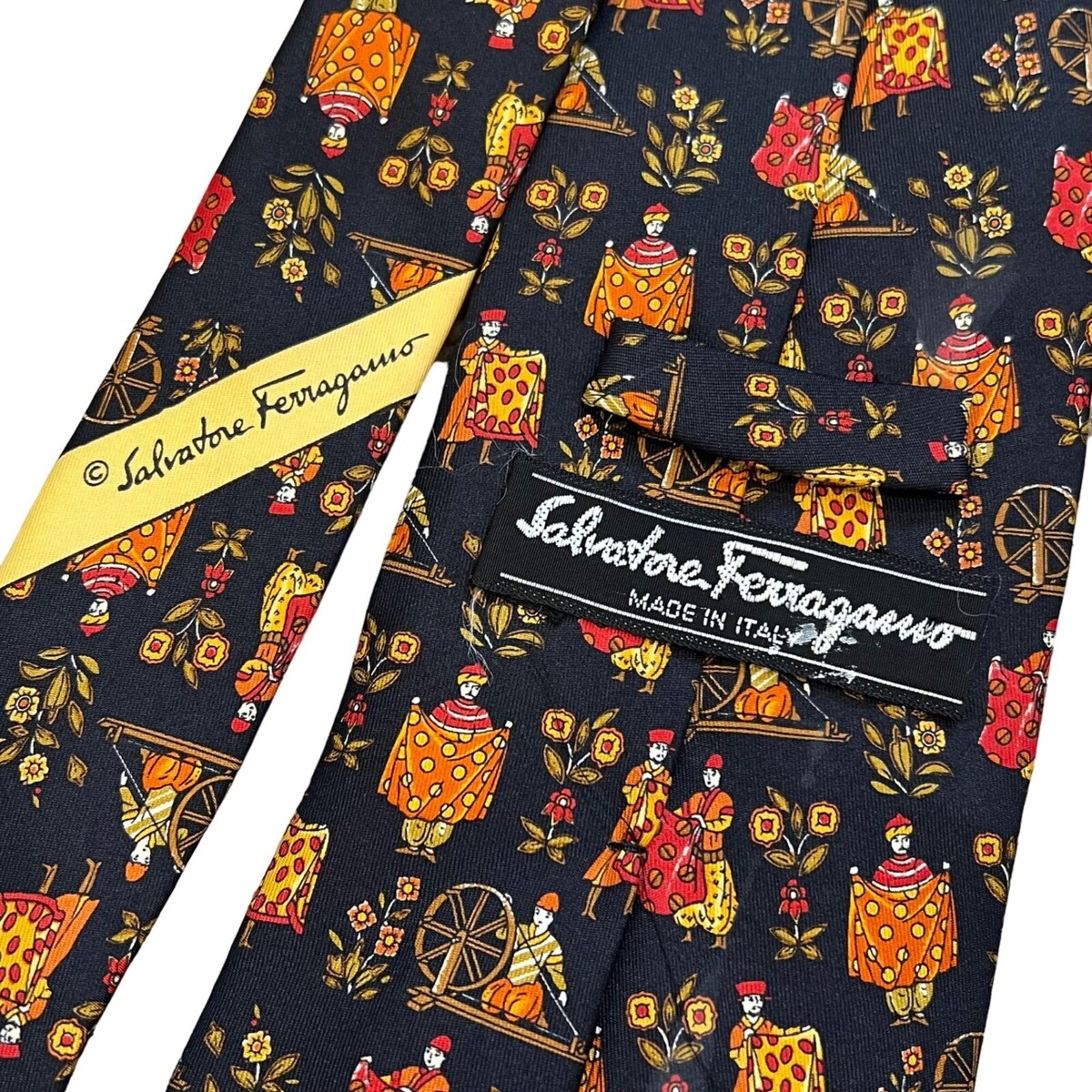 Salvatore Ferragamo Men's Silk Tie Made In Italy 50" Length Multicolor Pattern