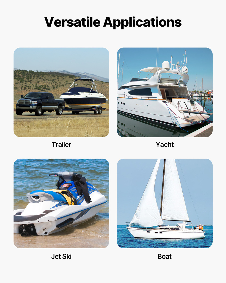 Secure Fastening: Our 2 in retractable ratchet straps can be secured with multiple wraps to increase friction and avoid slipping. The S-hook with a security clasp avoids accidental unhooking, ensuring your boat stays securely fastened during towing to avoid damage from bumps.