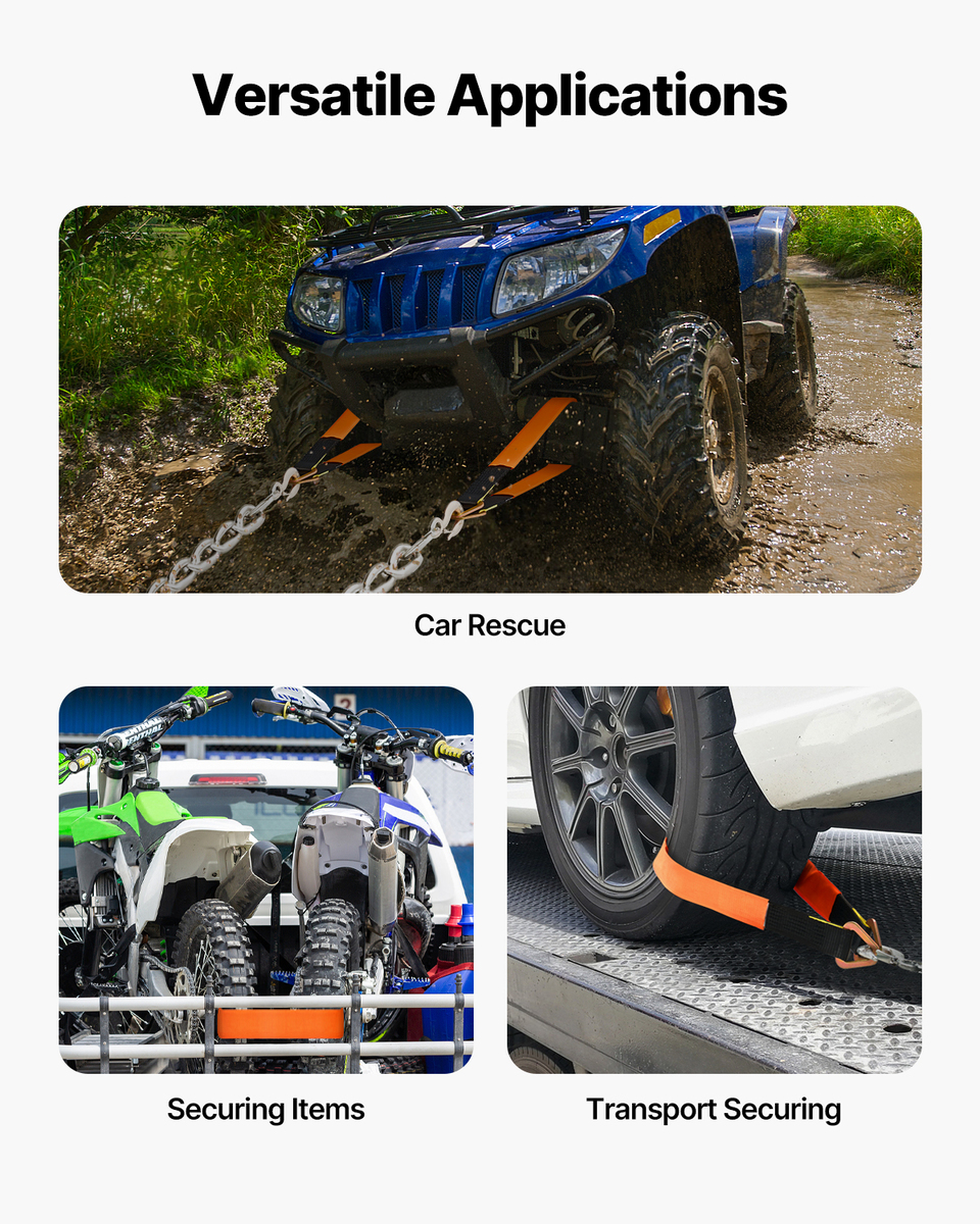 Versatile Application: Our heavy-duty axle straps are suitable for a variety of boats, heavy equipment, vehicles, and other items that need to be secured for transport, such as jet skis, sailboats, trucks, trailers, and more. With excellent efficiency, they’re the ideal choice for all your transport and securing tasks.