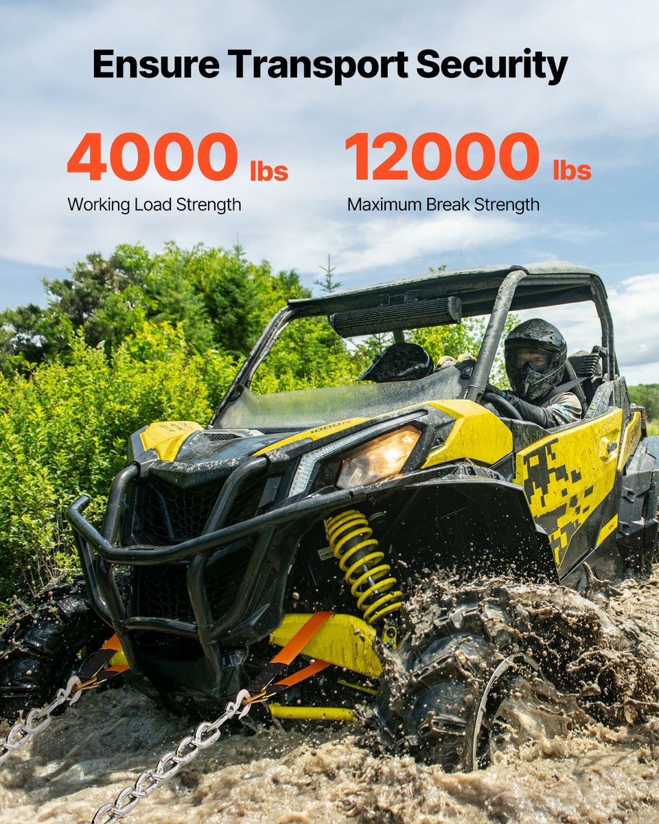 Heavy Load Capacity: Our axle straps are made from high-strength polyester material, offering excellent tensile strength and durability. They maintain superior performance even under harsh conditions, with a break strength of 12,000 lbs and a rated load capacity of 4,000 lbs. The package includes 4 durable 2 in x 3.2 ft winch straps, meeting all your cargo securing needs.