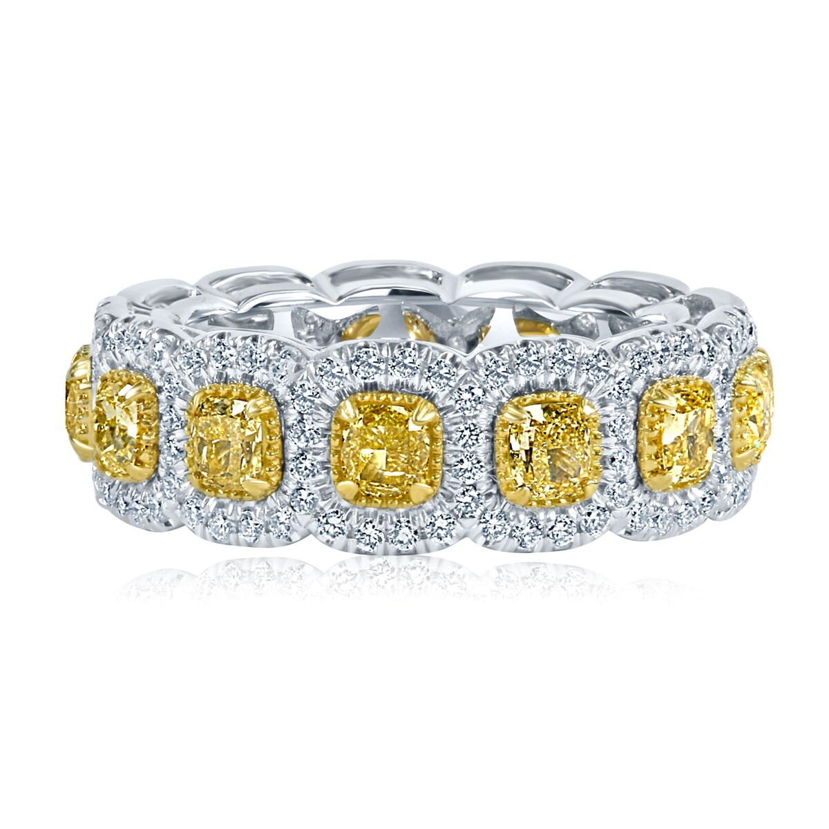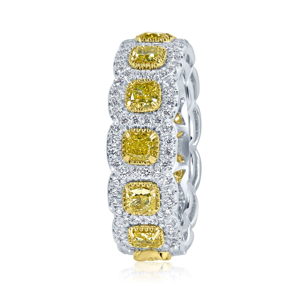 Eternity 4.02 Ct Natural Fancy Light Yellow Cushion Diamond 14k Wedding Band