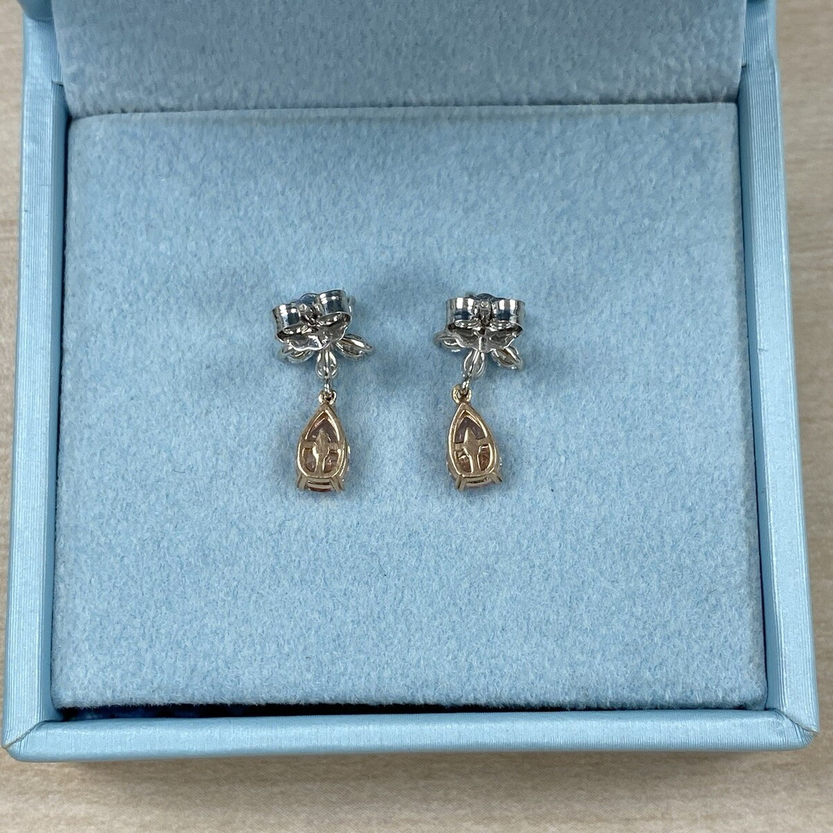 Ces belles boucles d'oreilles presentent des diamants roses intenses et des diamants roses intenses qui se penchent avec elegance, ajoutant une touche de sophistication a tout ensemble de mariee ou formel. Les diamants cultives en laboratoire brillant Pear, connu pour leur sparkle exceptionnelle et leur elegance intemporelle. Des diamants supplementaires sur les diamants cultives en laboratoire de poire supplementaires ameliorent l'eclat et le feu globaux des boucles d'oreilles. Fabriques en or 14 carats blancs et rose, les boucles d'oreilles offrent une toile de fond classique et luxueuse qui complete magnifiquement les diamants etincelants !! Le poids total de la carat 1,30.