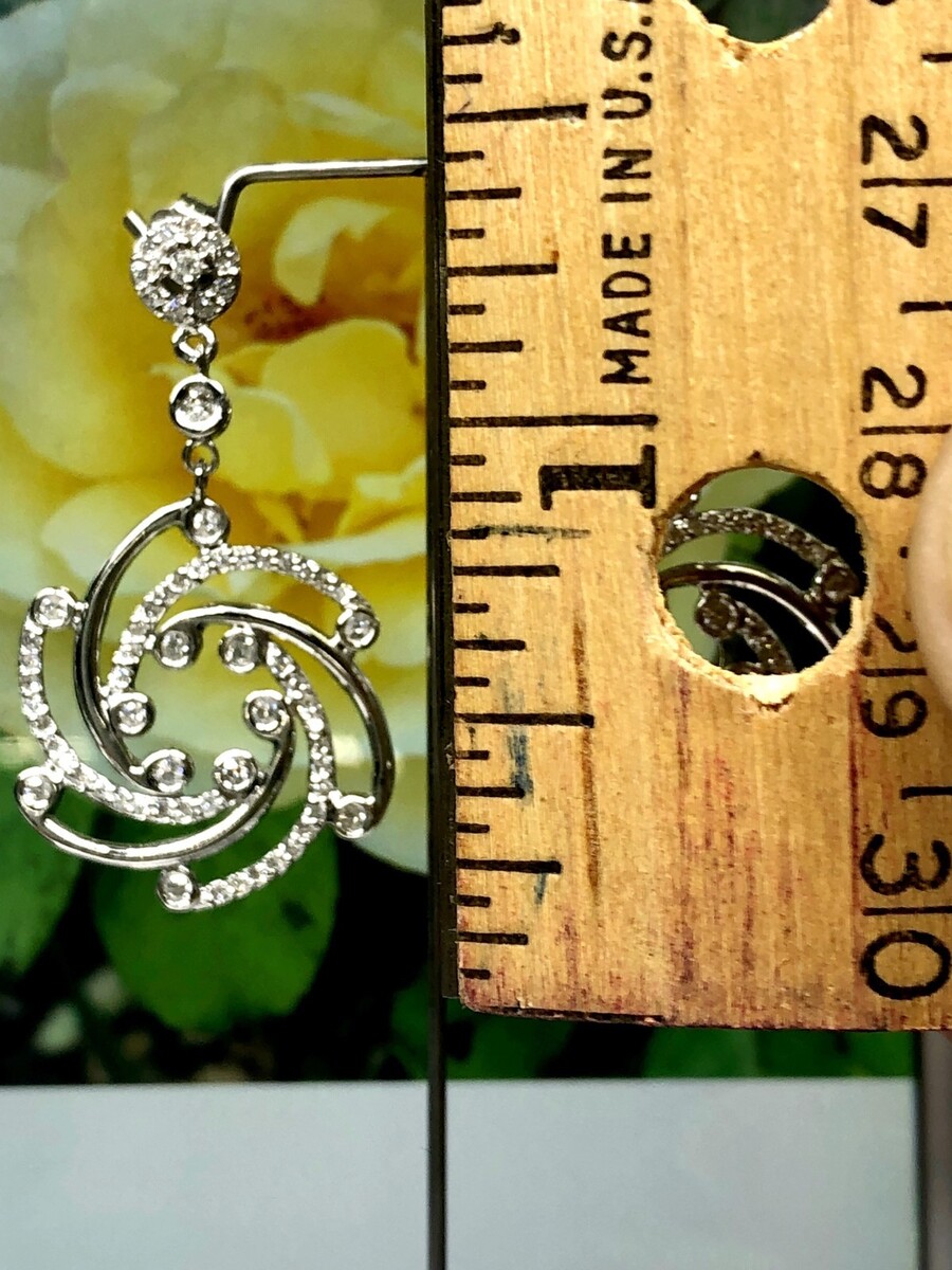 0.80 Carati Diamante Pendente Whirlwind Orecchini 14k Oro Bianco Donna Push Back