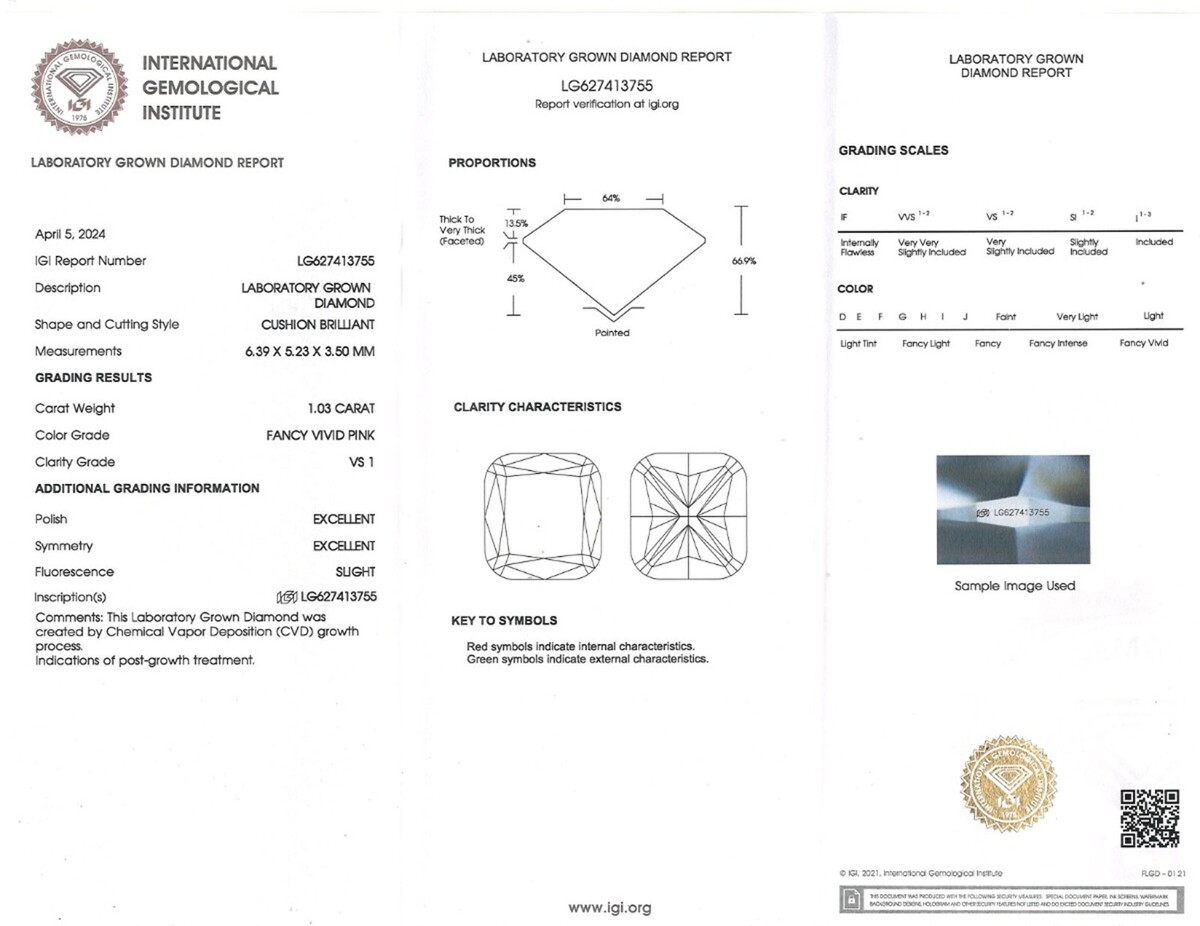 Die Ohrringe sind mit dem International Gemological Institute Certificate (IGI) # LG627413755 und # LG621413741 ausgestattet