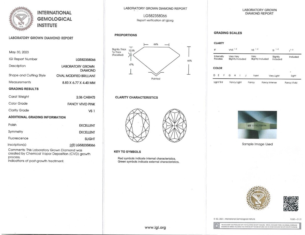 L'anello viene fornito con il numero di rapporto LG582358066 dell'International Gemological Institute (IGI).