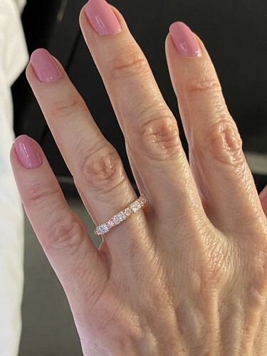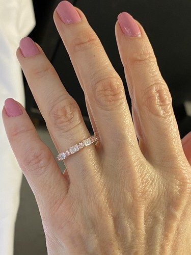 Esta increíble alianza de boda de 9 piedras de 1,00 quilates presenta un diseño alterno, que combina a la perfeccion el brillo de los diamantes rosados ??cultivados en laboratorio de talla brillante redonda de 0,30 quilates con el atractivo de los diamantes cultivados en laboratorio de talla brillante radiante de 0,70 quilates de color incoloro, todos elegantemente engarzados en oro rosa brillante de 14k. ¡Celebre su union con esta encantadora alianza de boda, diseñada para ser tan única y extraordinaria como su historia de amor! Todos nuestros productos estan hechos a mano con calidad y cuidado, en el corazon del distrito de los diamantes en la calle 47 de la ciudad de Nueva York. Nuestra dedicacion y compromiso con el buen trabajo y la calidad superan a todos los demas. Dado que todos nu