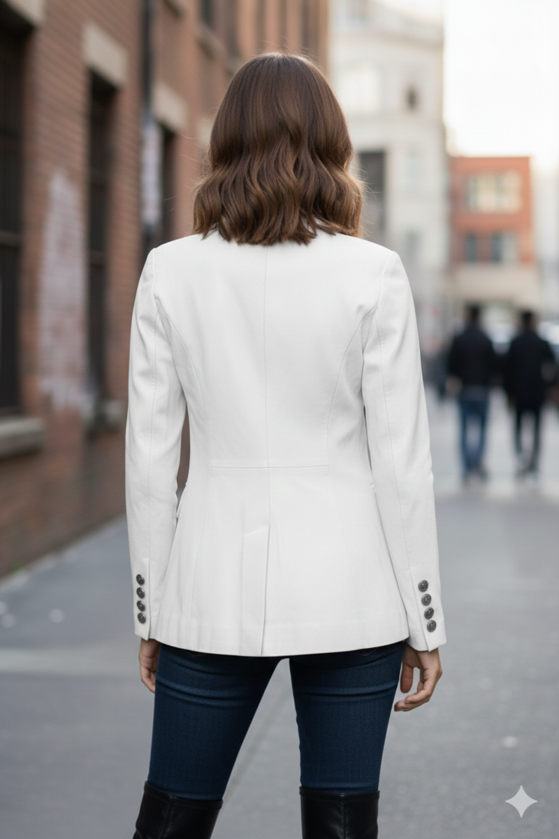 Blazer hecho a mano de cuero blanco genuino elegante oficina formal para muje...