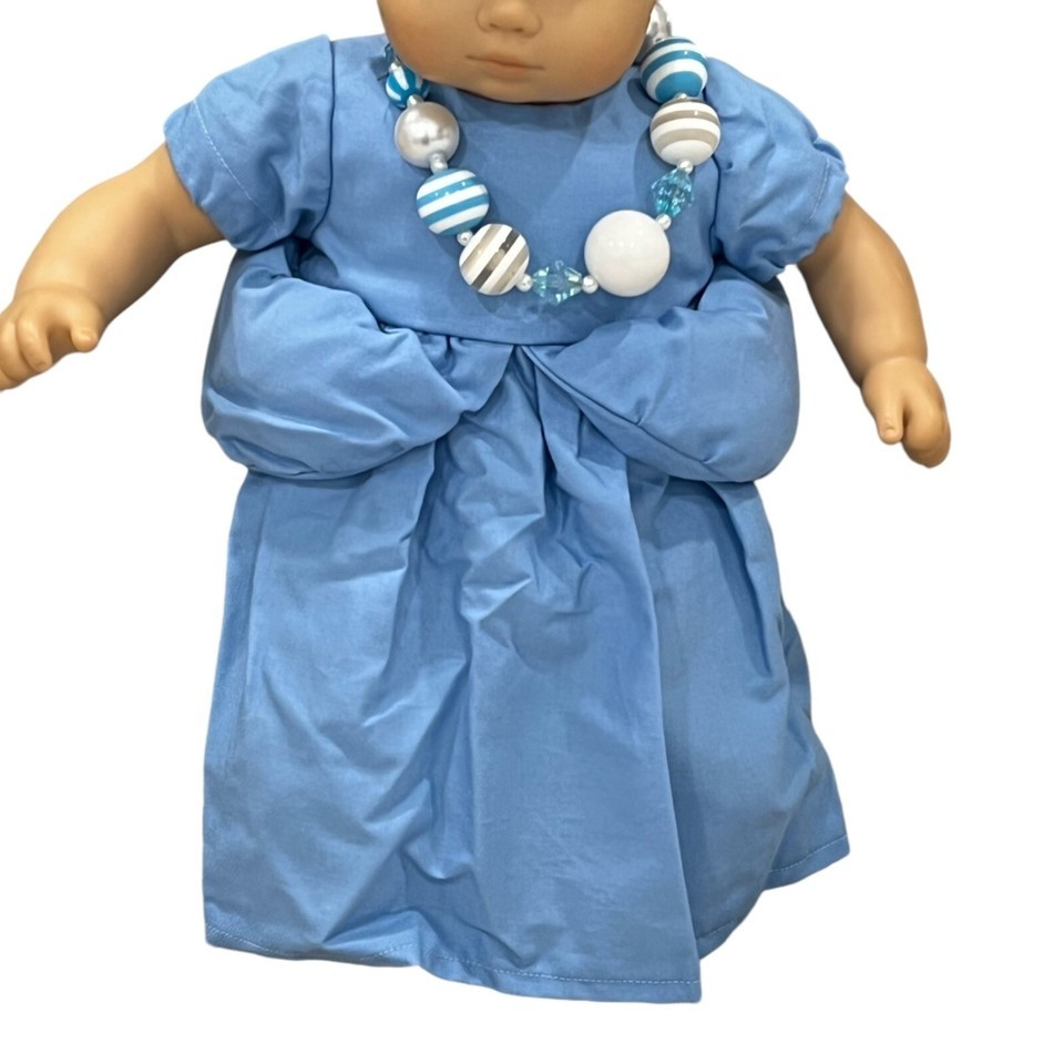This is handmade, made to fit 15" Bitty Baby Dolls, includes fun bubble bead necklace as well.