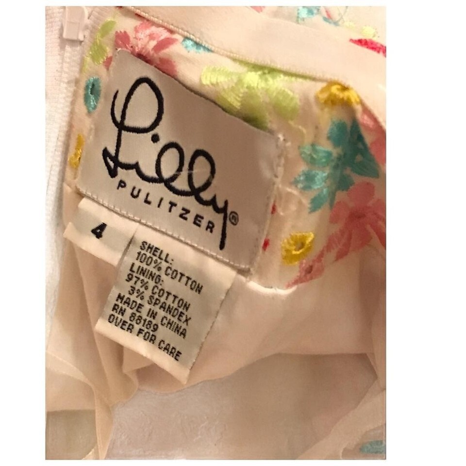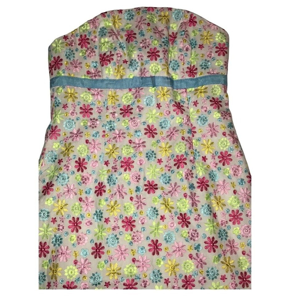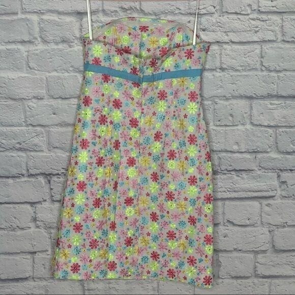 Lilly Pulitzer Colorful Daisies Strapless Dress Sz 4 White Label Vintage Women's