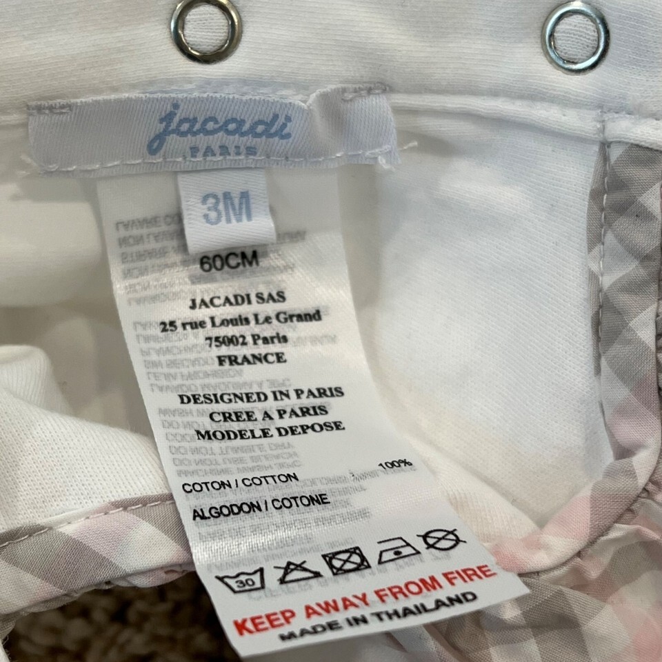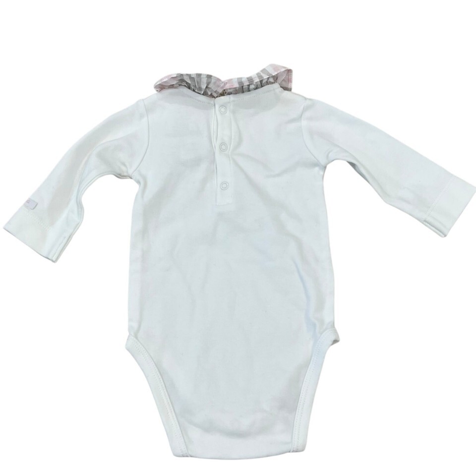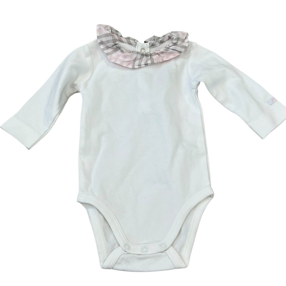 Jacadi Baby Long-Sleeve White Bodysuit With Plaid Ruffle Collar 3M 100% Cotton