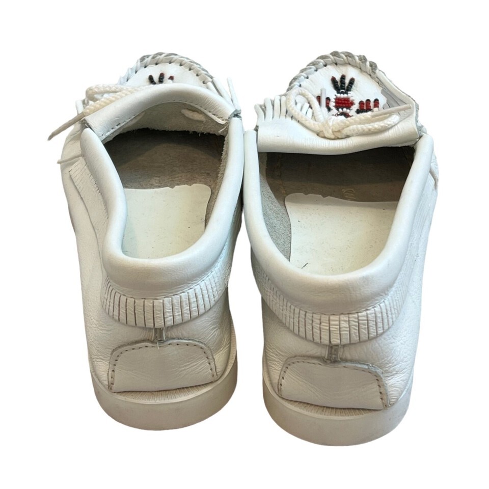 Minnetonka Moccasins Shoes size 7 White Leather Beaded Fringe Flats