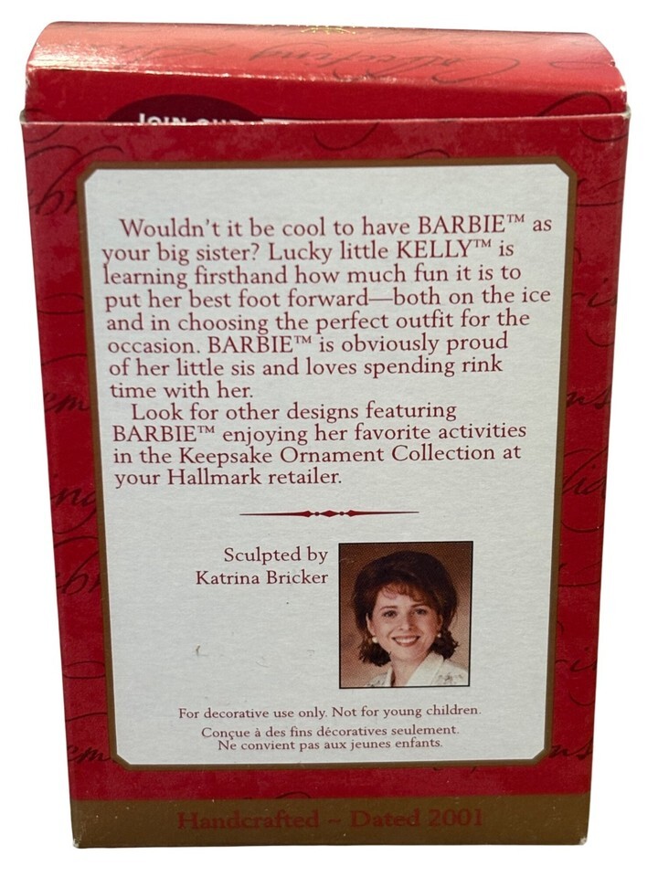 Hallmark Keepsake Ornament Barbie & Kelly On The Ice Handcrafted Dated 2001