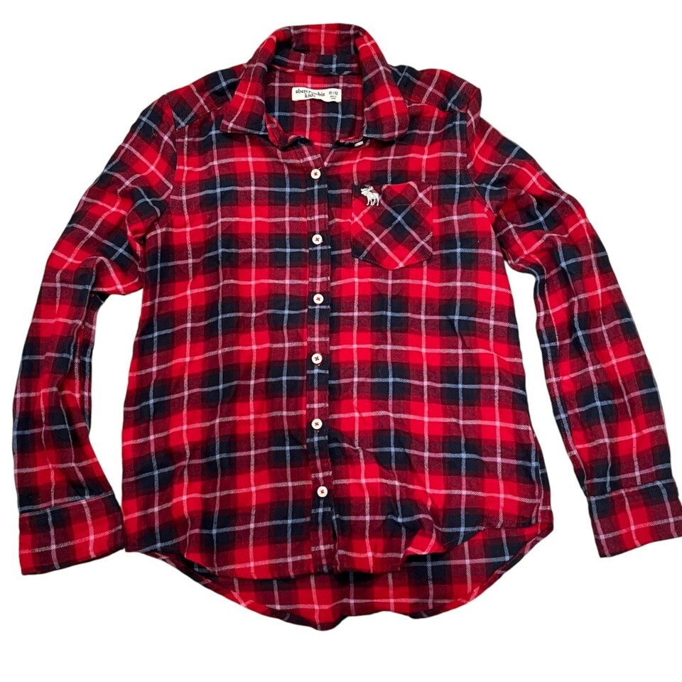 Abercrombie Kids Red & Black Plaid Button-Up Shirt Size 11/12 Long Sleeve Cotton