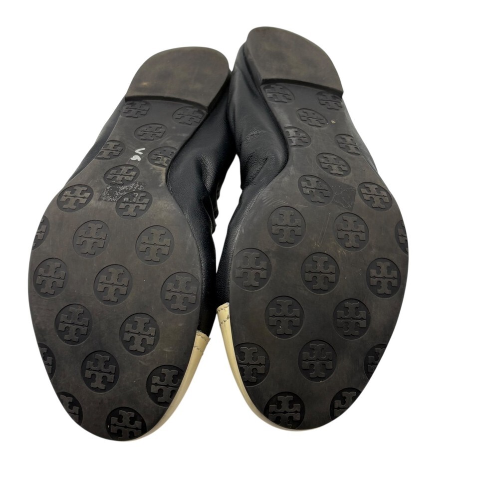 Tory Burch Womens Black & Cream Leather Cap Toe Ballet Flats Size 7.5