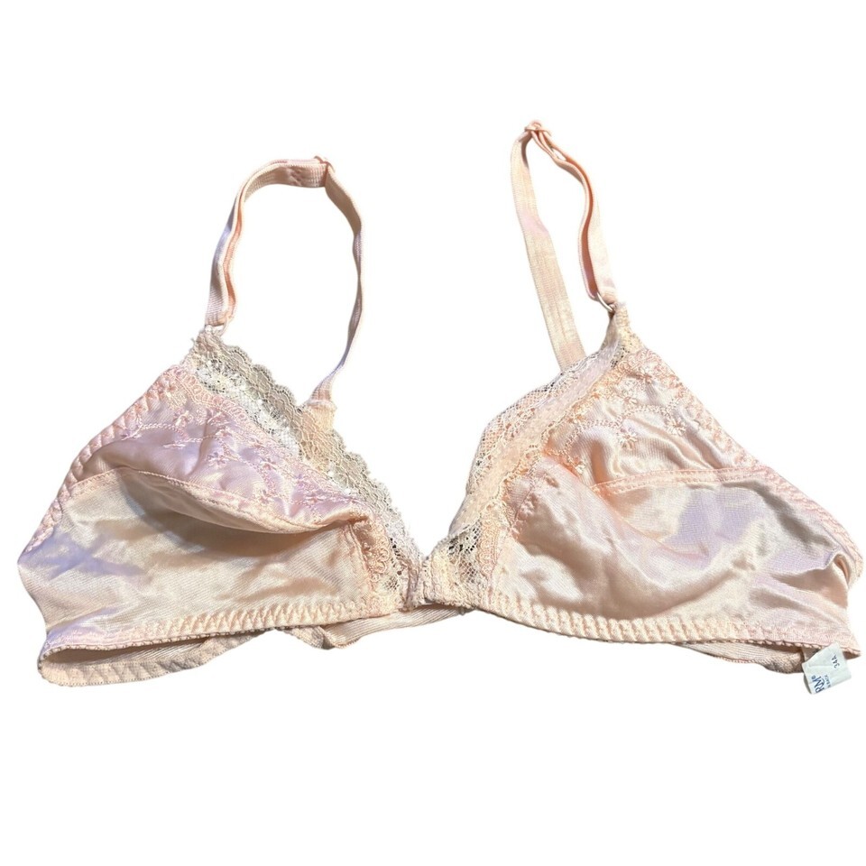 Vintage Bestform #6260 34A Peach Satin & Lace Bralette Front Closure