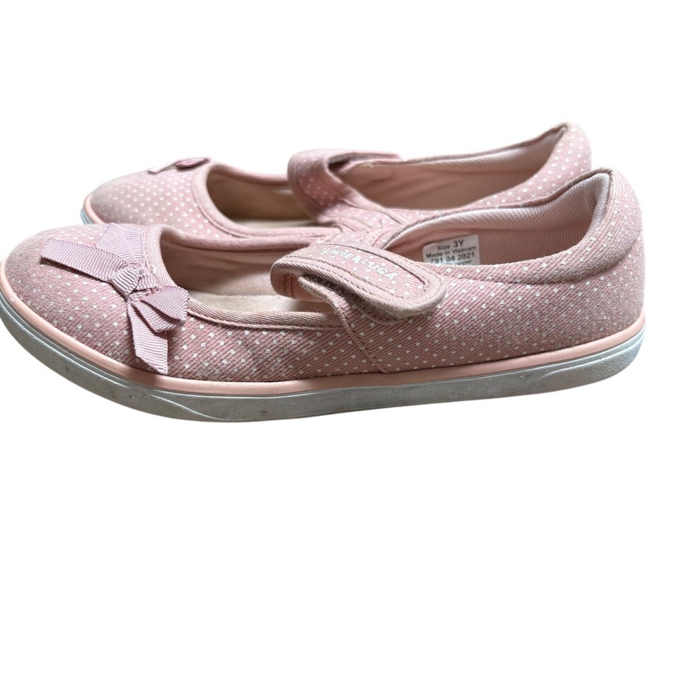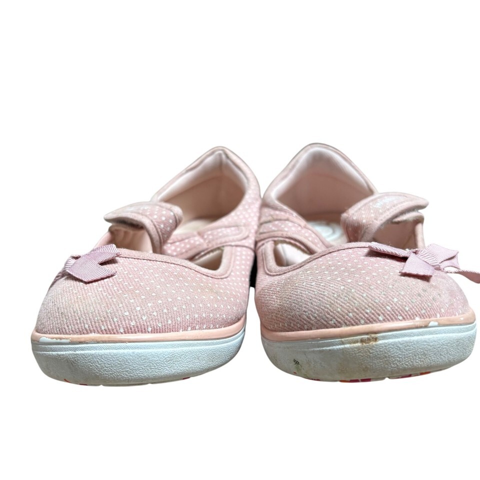 Pink Polka Dot Mary Jane Girls Shoes By Livie & Luca With Bow Detail & Hook/Loop