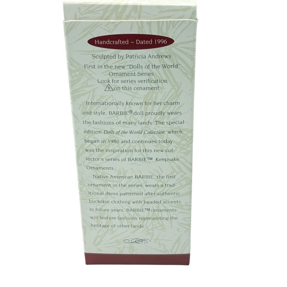 Hallmark Keepsake Ornament 1996 Native American Barbie Dolls Of The World Collec