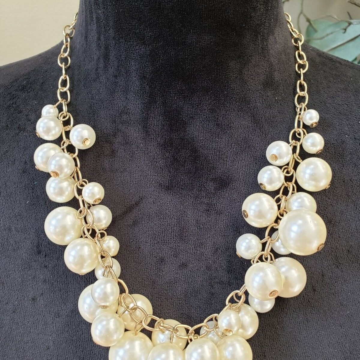 Womens Chunky White Faux Pearl Cluster Bib and similar items