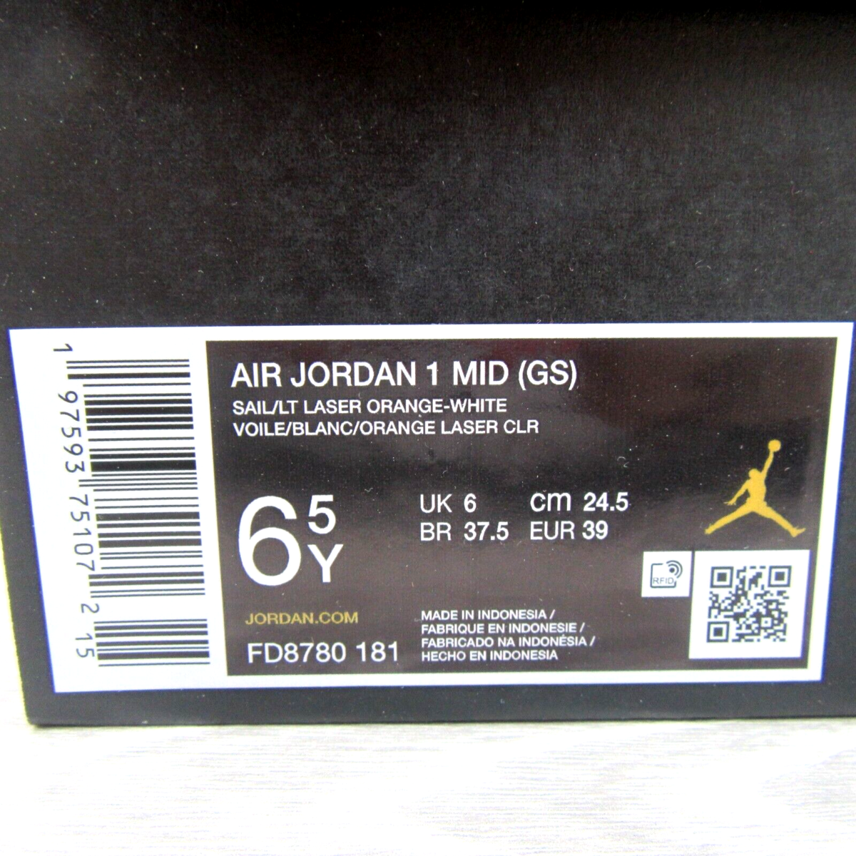 Air Jordan 1 Mid Sail White Laser Orange Youth Sneakers