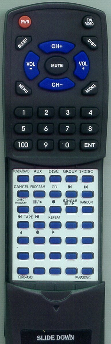 Product description: This is a custom built replacement remote made by Redi Remote for the PANASONIC remote control number EUR644340. *This is NOT an original remote control. It is a custom replacement remote made by Redi-Remote* This remote control is specifically designed to be compatible with the following models of PANASONIC units: EUR644340, SACH64M, SAC649, SCCH64M *If you have any concerns with the remote after purchase, please contact me directly* There is a cover over the lower half of the remote. This will slide down to reveal the lower half buttons.