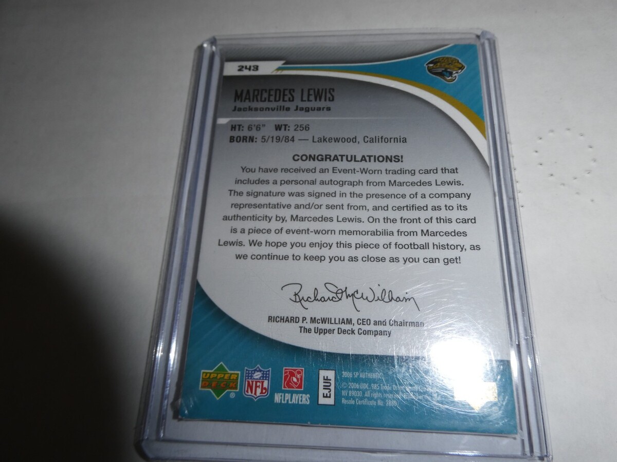 2006 SP Authentic Football Marcedes Lewis Auto Relic Rookie Card 243 /999