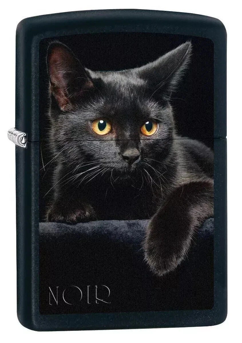 The Black Cat Design, Black Matte Finish Zippo Lighter is a high-quality, collectible lighter made in the United States by the renowned brand Zippo. With a sleek black matte finish and a striking sport-themed design featuring a black cat, this lighter is both functional and stylish. Perfect for smokers or collectors, this Zippo lighter is sure to make a statement with its unique design and reliable performance.