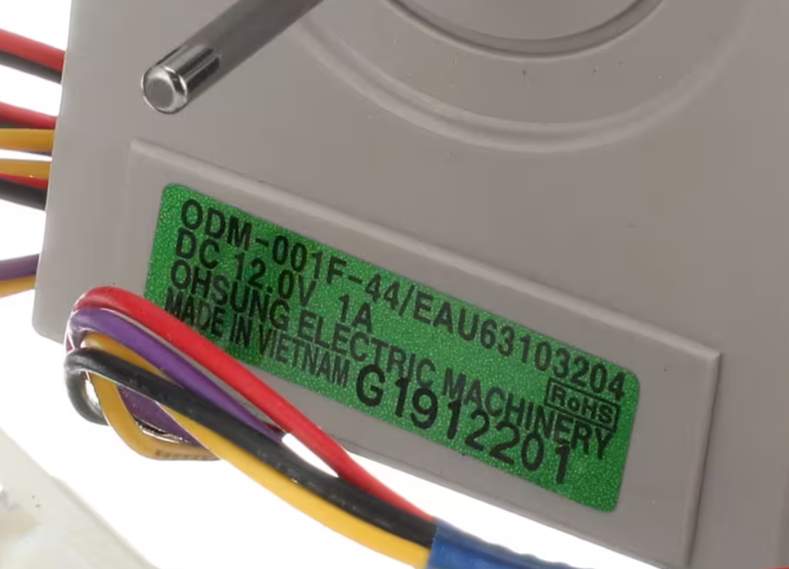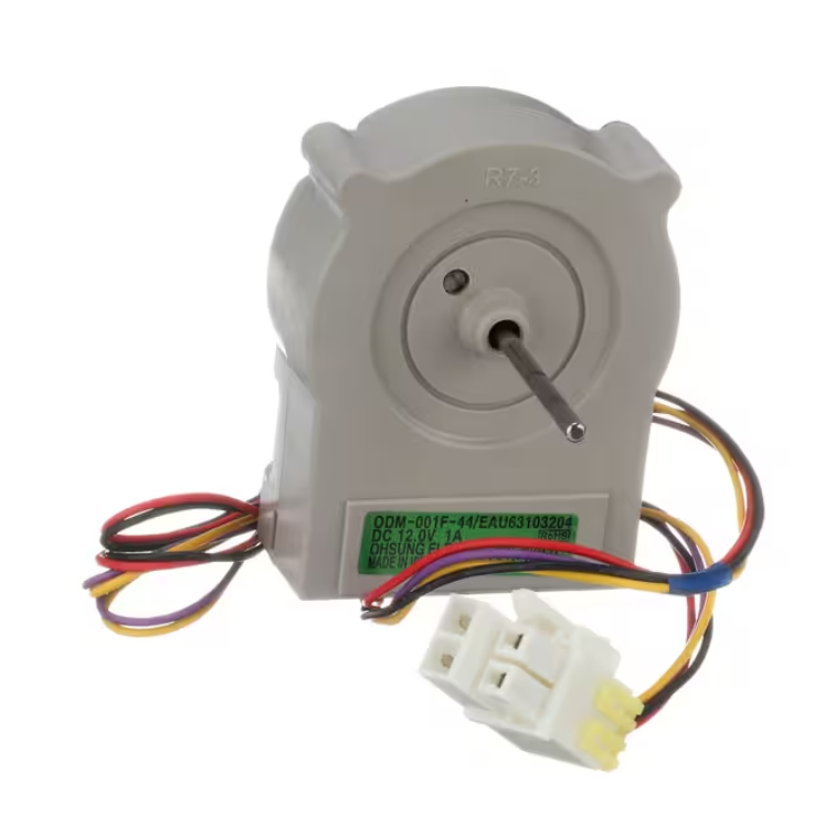 The LG Appliances ODM-001F-44 / EAU63103204 Evaporator Fan Motor, 12V DC is a genuine OEM replacement part designed to circulate cold air throughout the refrigerator compartment. This motor ensures even cooling, reduces temperature fluctuations, and supports efficient system performance. Replacing a failing or noisy evaporator fan motor restores proper airflow and helps maintain consistent internal temperatures.