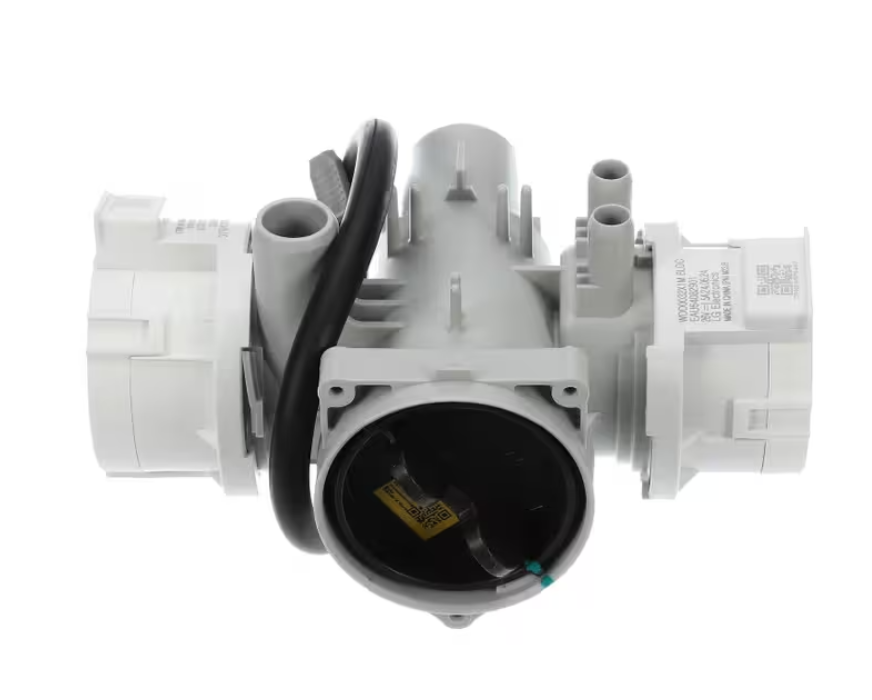 The LG Appliances WDD0032X1M, EAU64082901 Drain Pump Assembly is a genuine OEM replacement part designed to remove water efficiently during the wash and rinse cycles. A properly functioning drain pump ensures that your washer drains fully, preventing standing water, error codes, and incomplete cycles. If your washer is not draining, is making unusual noises, or shuts down mid-cycle, replacing the drain pump assembly restores reliable performance.
