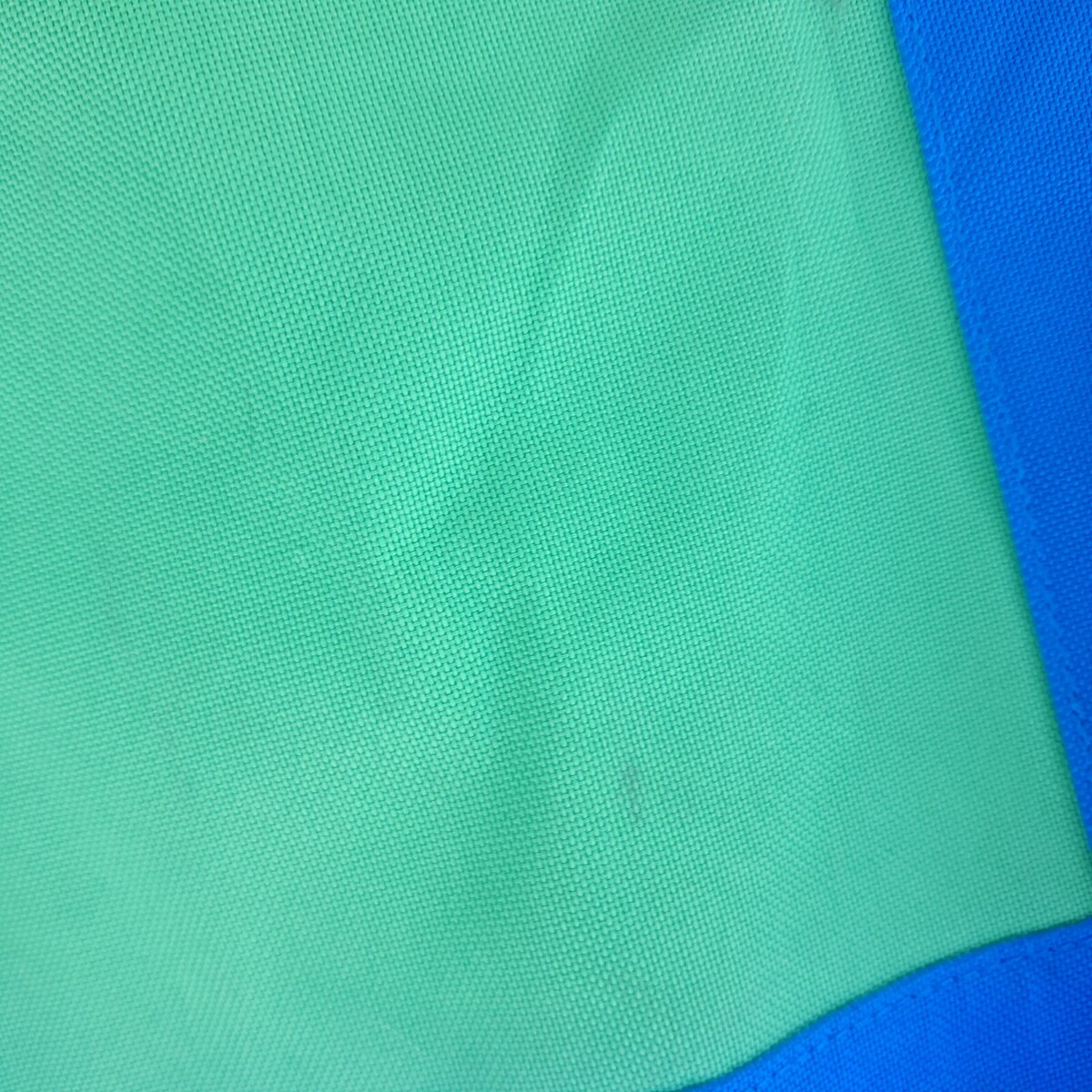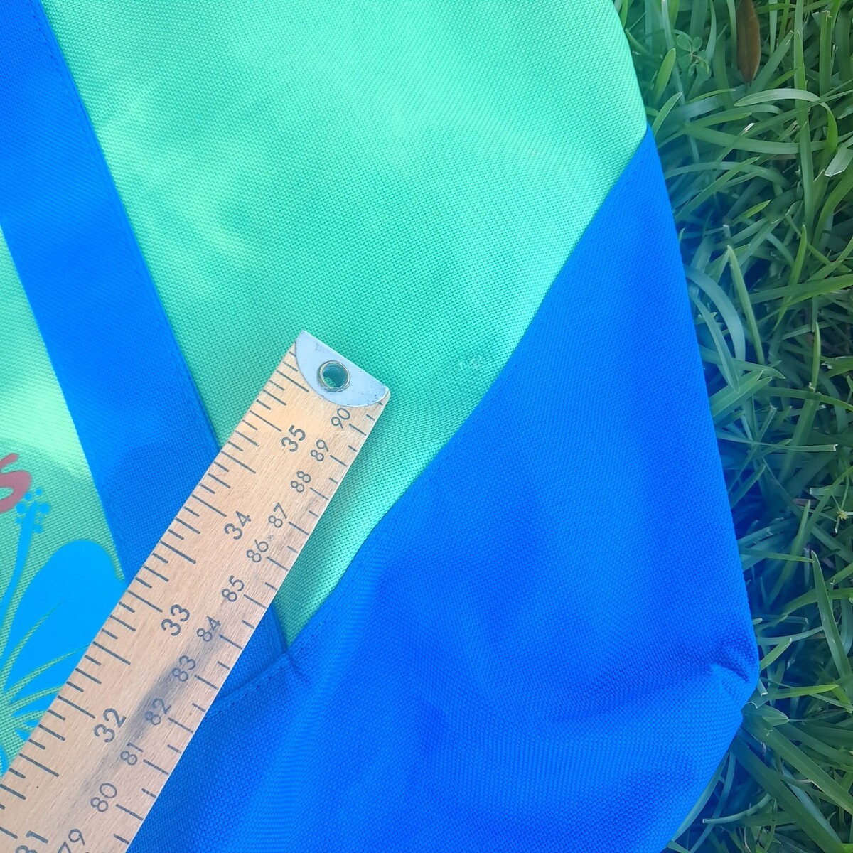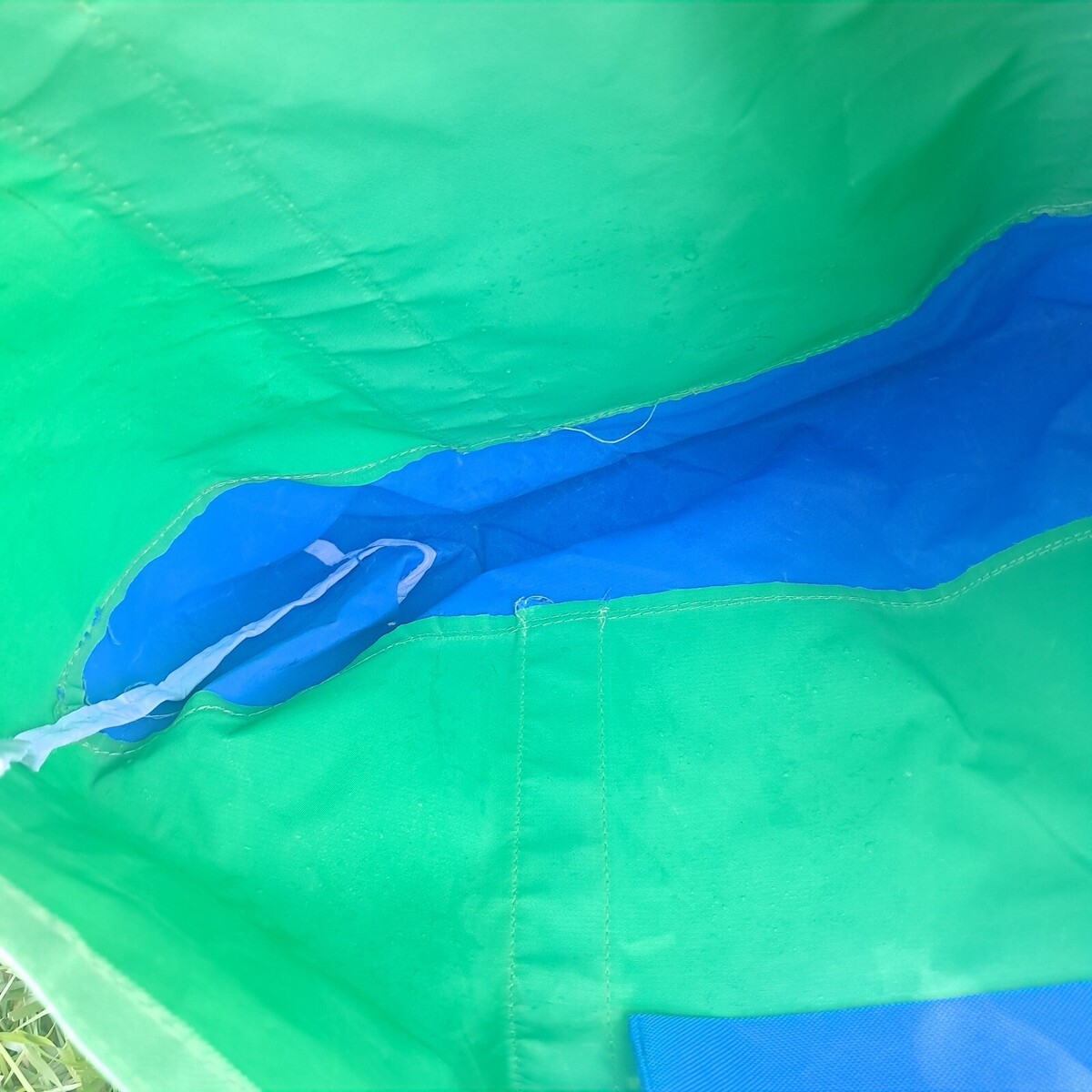 Canvas type material, great for beach or pool. Some small holes as the bottom, marks as shown. See pics.