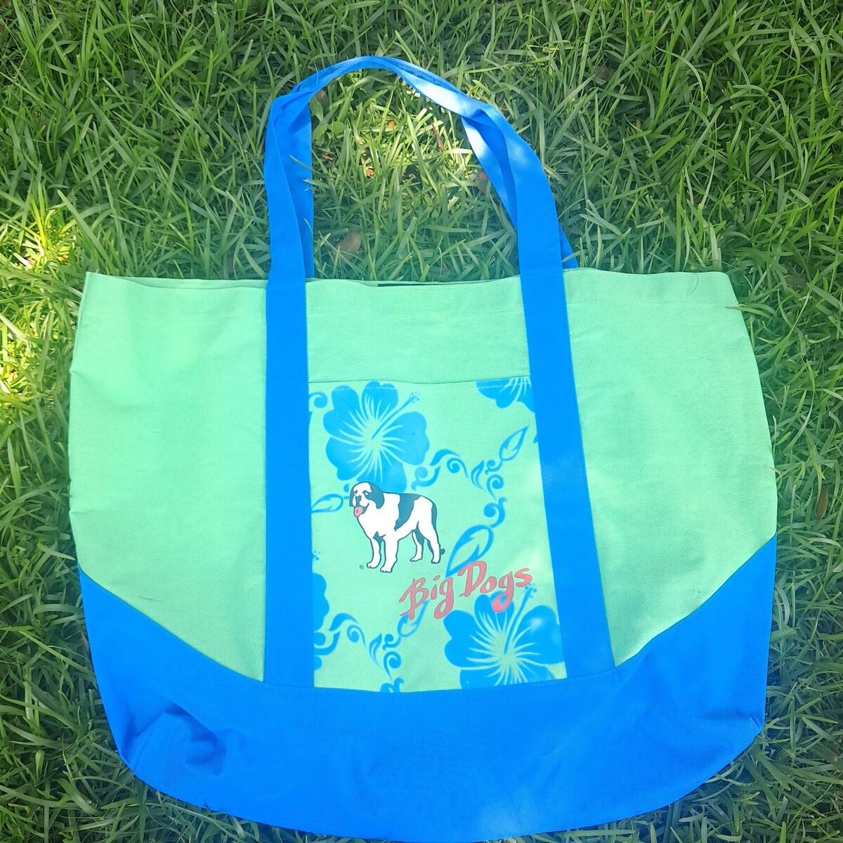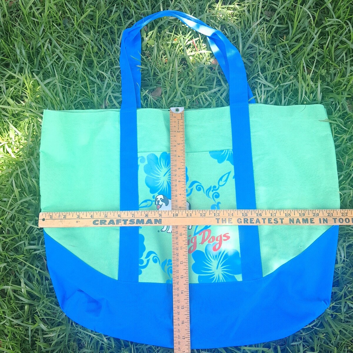 Vintage Big Dogs Tote Bag Pockets Green Blue Canvas Hawaiian flower beach Y2K