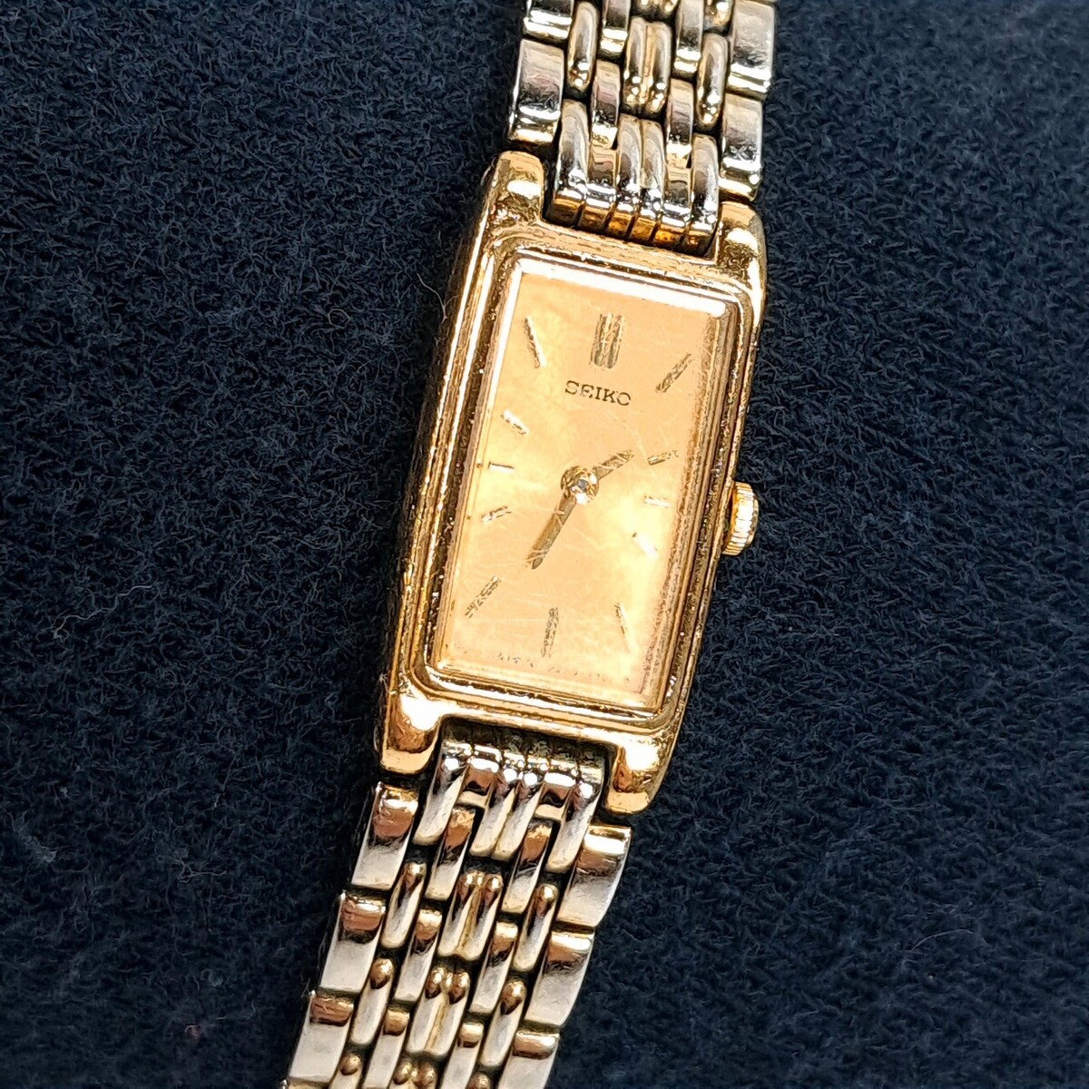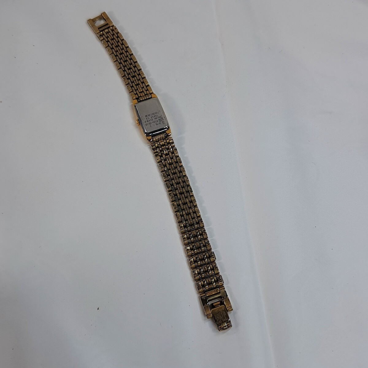 Vintage Seiko Watch Women Gold Tone Gold Dial Rectangle bracelet 2E20-7023 dress