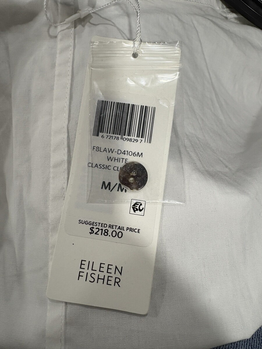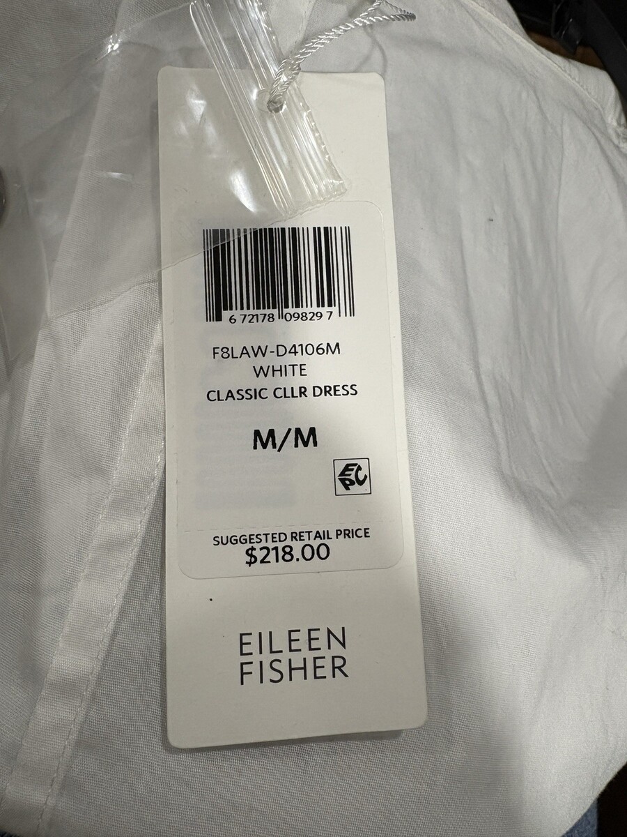 NEW Eileen Fisher Organic Crisp Cotton Long Sleeve Shirtdress White Sz M