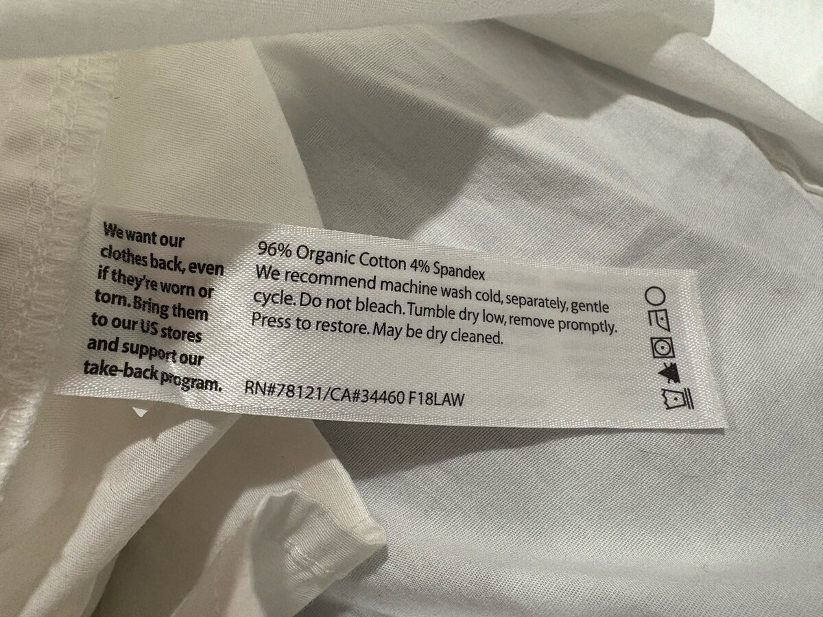 The NEW Eileen Fisher Organic Crisp Cotton Long Sleeve Shirtdress in White size M is a stylish and versatile piece perfect for travel and casual occasions. Made from 96% organic cotton and 4% spandex, this dress features a collared neckline, button closure, and classic fitted long sleeves. With a midi length and lightweight fabric, it is ideal for wearing in the summer, fall, or spring seasons. The dress also includes accents like slits and a woven fabric type, making it a classic and comfortable choice for women looking for a sustainable and fashionable option in their wardrobe.