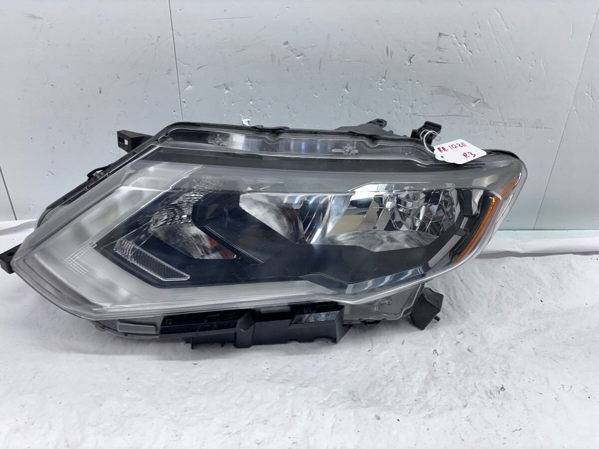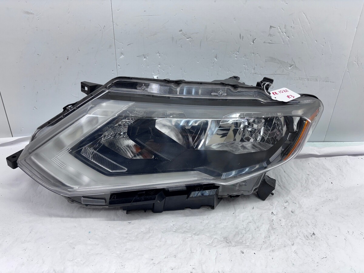 OEM Front Left Headlight for 2017-2020 Nissan Rogue. Driver side, halogen with clear lens and black housing. Used but in good condition; see photos. Factory OE-Certified, fits Rogue RA.10.211 R3. Ships to 48 US states via FedEx Ground; Global Shipping available. VIN not provided; please review photos.