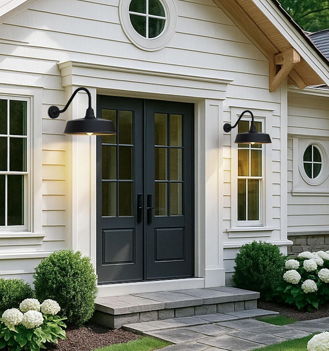 Gooseneck and Large Lampshade Design:The porch decorations outdoor farmhouse light has a lampshade with a diameter of 18 inches and a gooseneck extension arm of 19 inches, adding a modern farmhouse look to any building