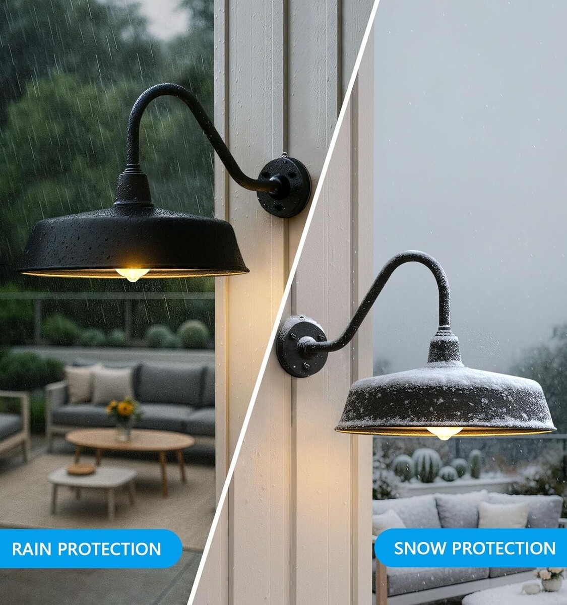 Intelligent Dusk-to-Dawn Sensor:This outdoor gooseneck barn light features a high-sensitivity smart IC sensor that automatically turns on/off the light at night and in the daytime