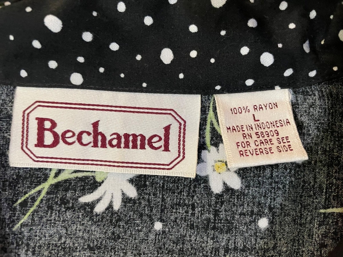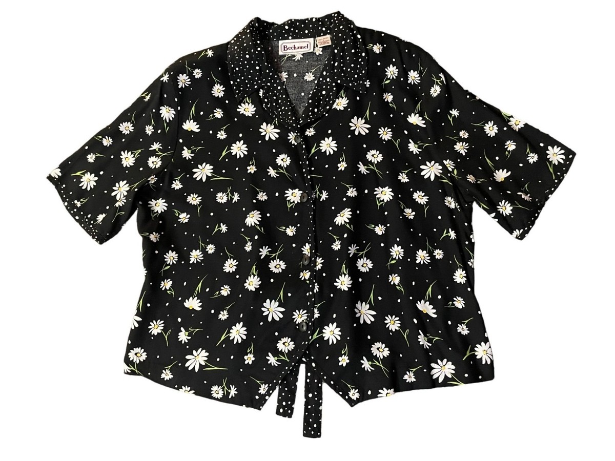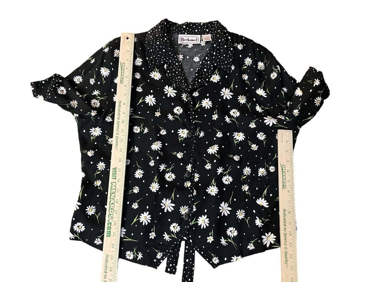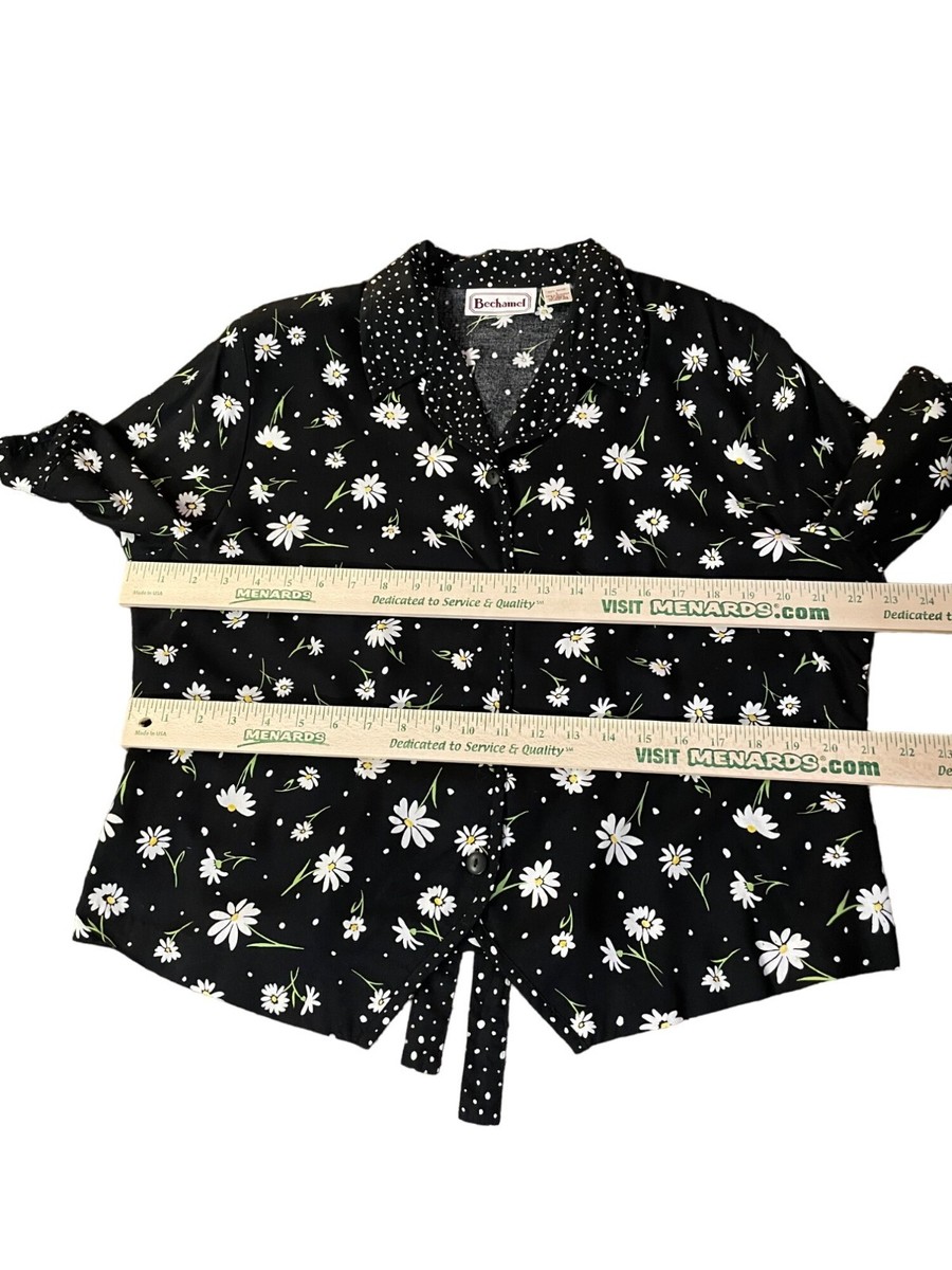 Vintage Bechamel Daisy Polka Dot Blouse Women?s L Rayon Tie Front Button Up 90s Floral