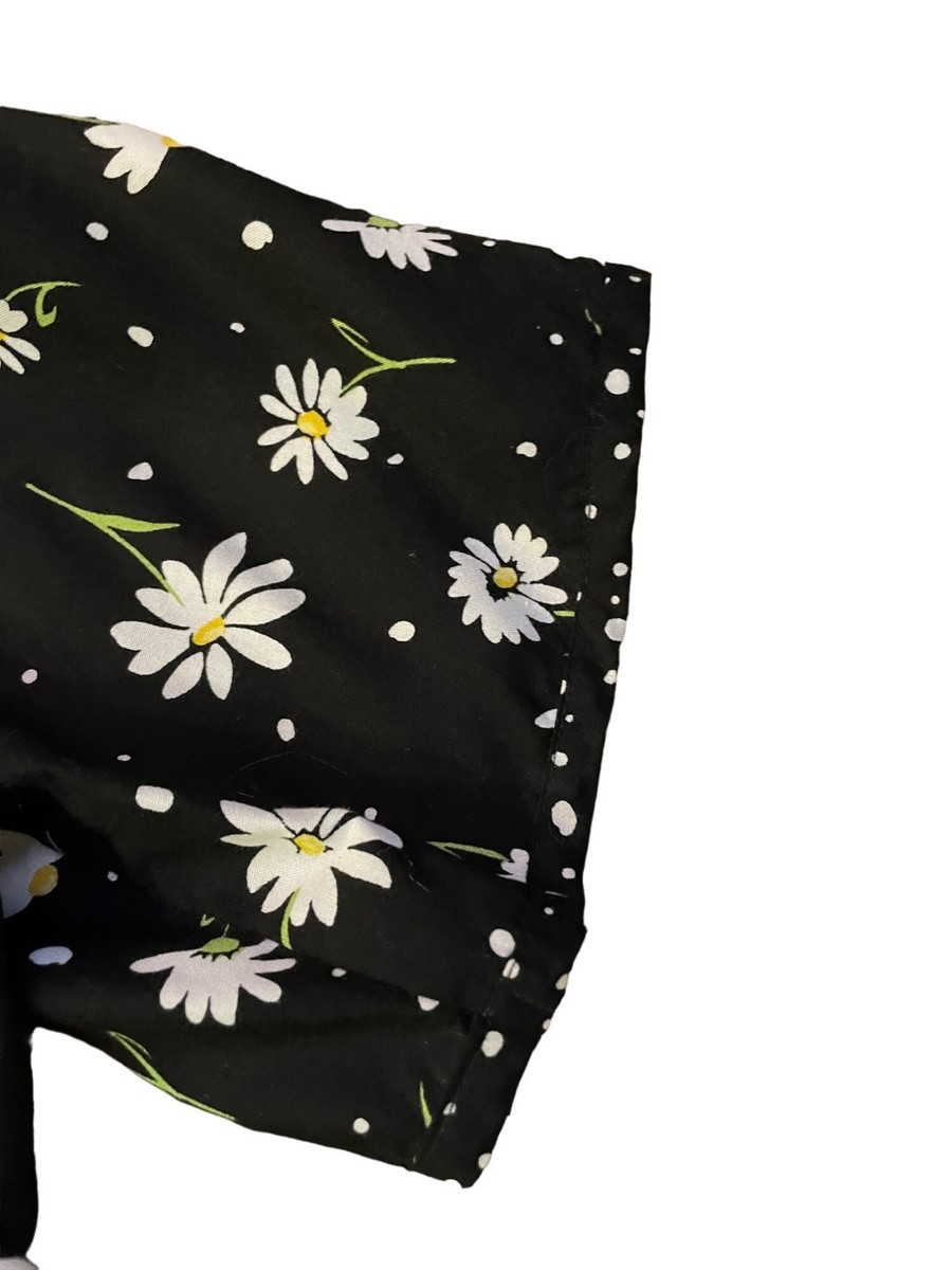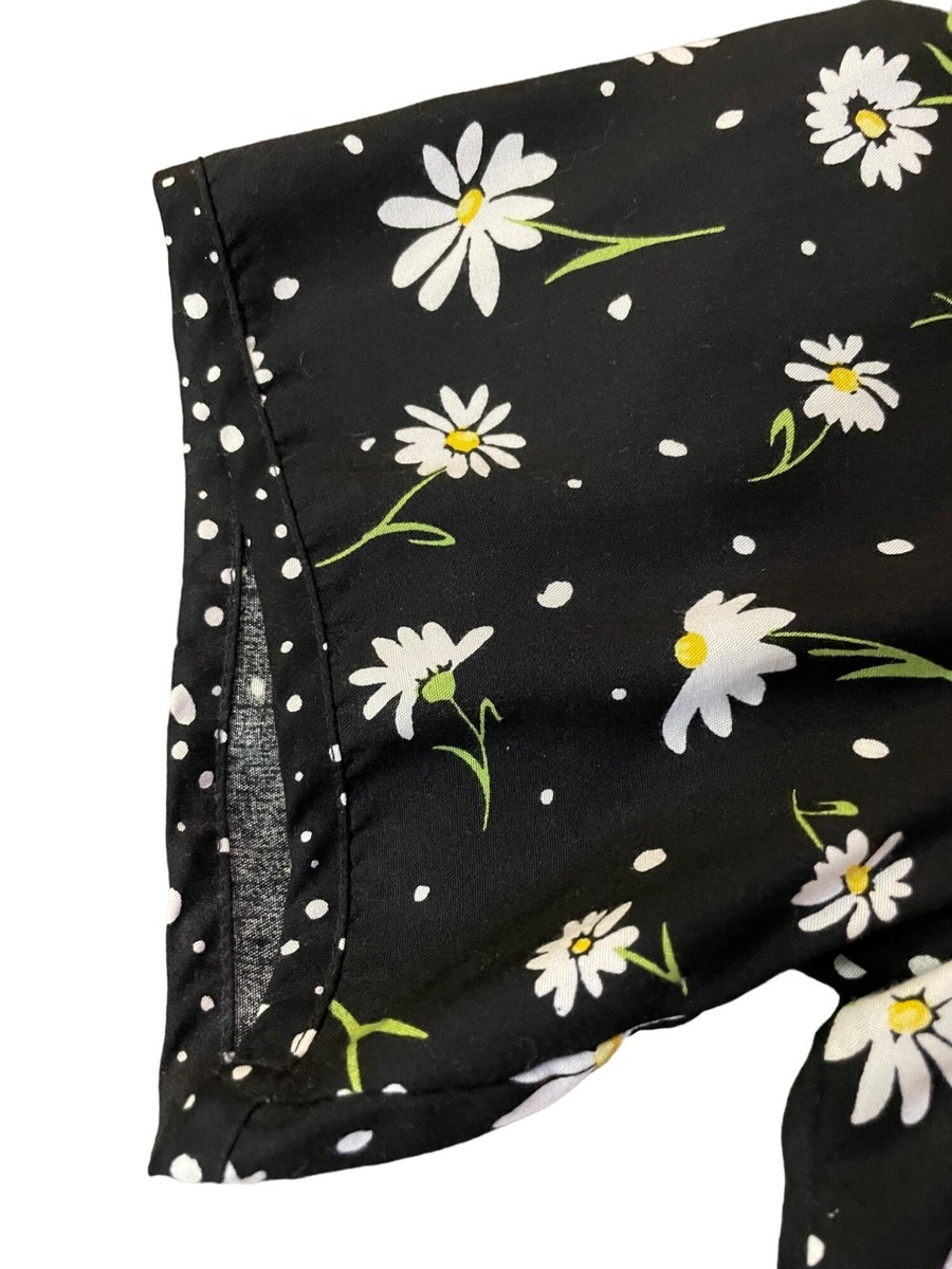Daisy, Vintage, Floral, Polka Dot, Casual, vintage, bechamel, daisy, floral, polka dot, rayon, blouse, womens, tie front, button up, 90s style, cottagecore, retro top, boho, summer blouse, black white yellow, floral print, vintage shirt, womens large