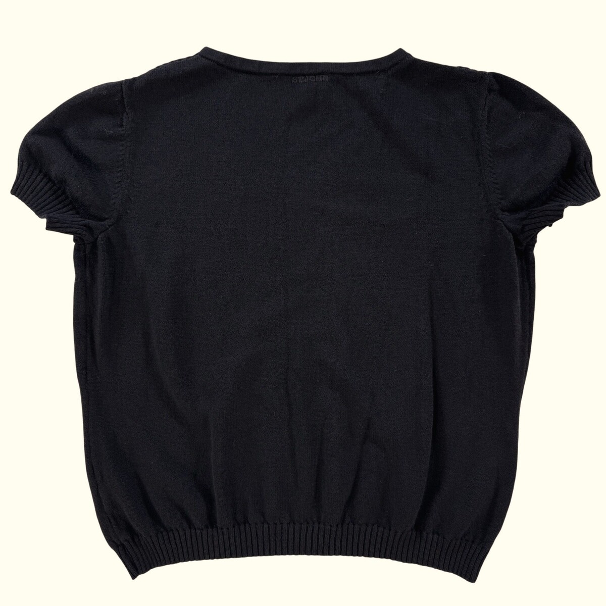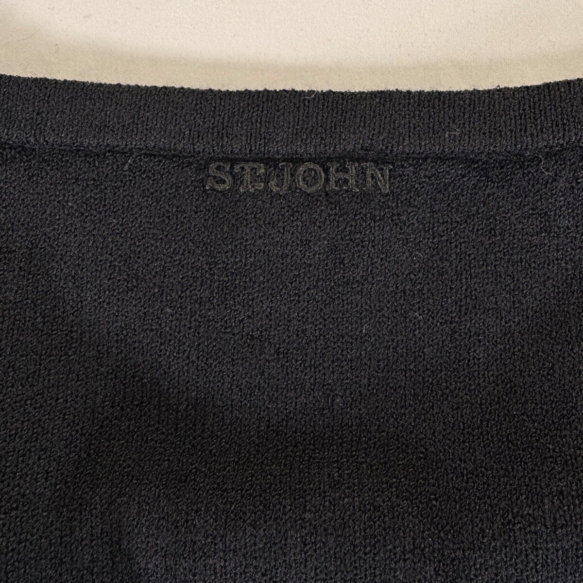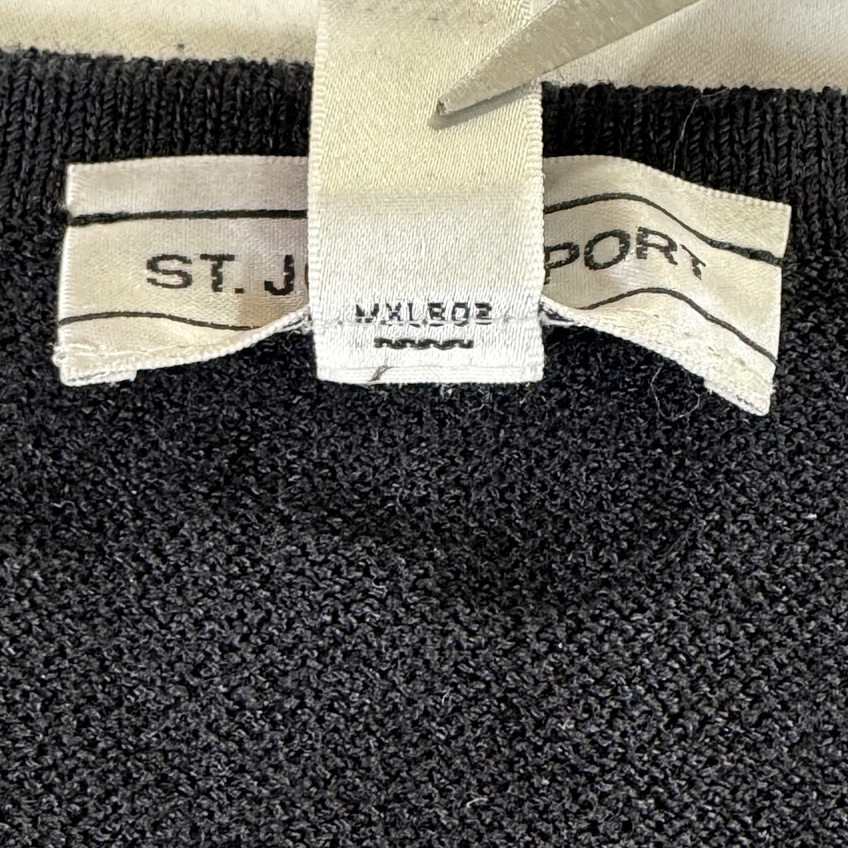 St. John Sport Women's XL Wool Rayon Short Sleeve V-Neck Sweater Black