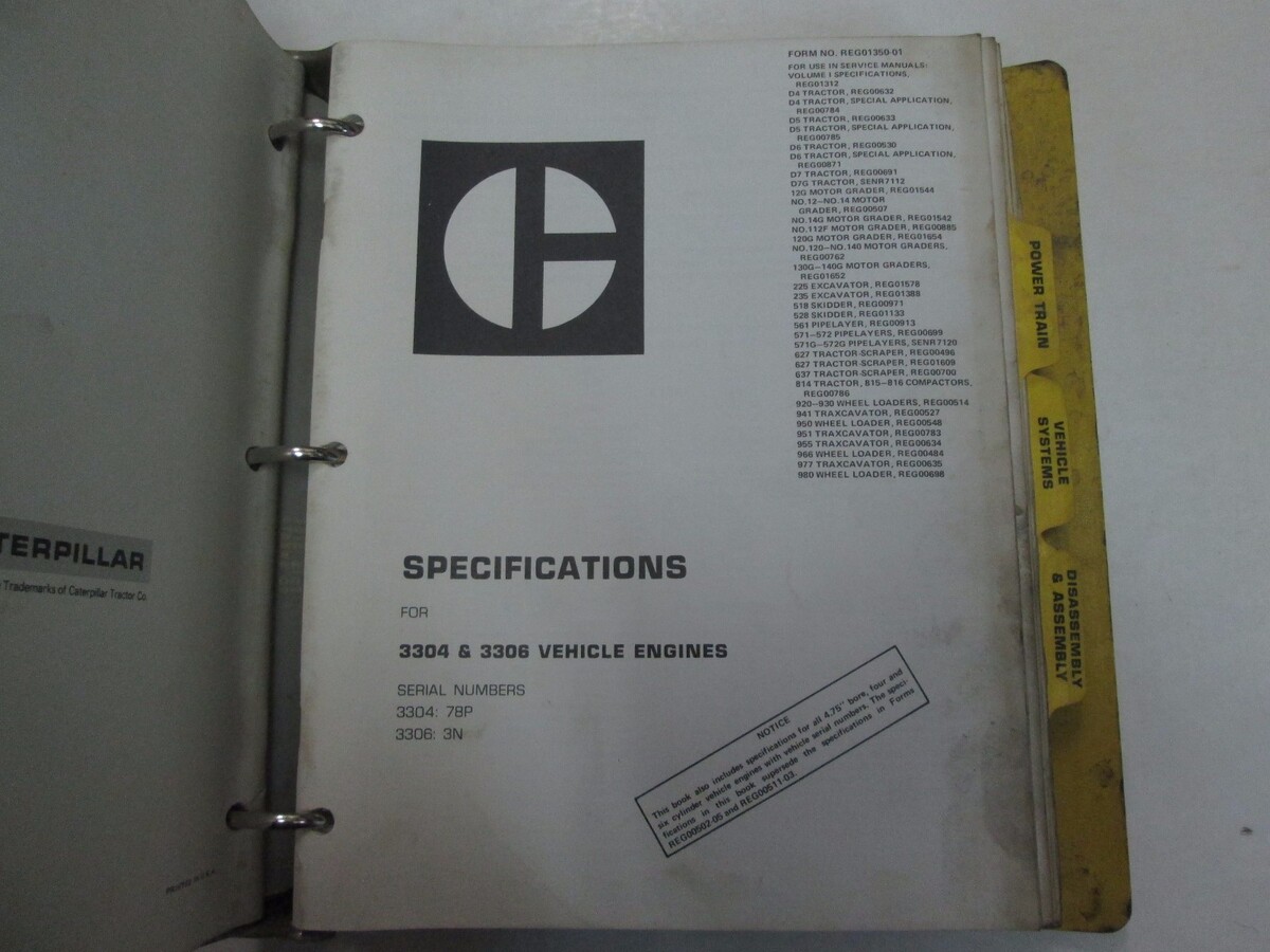 Caterpillar 3304 3306 Vehicle Engines Engine Specifications Manual