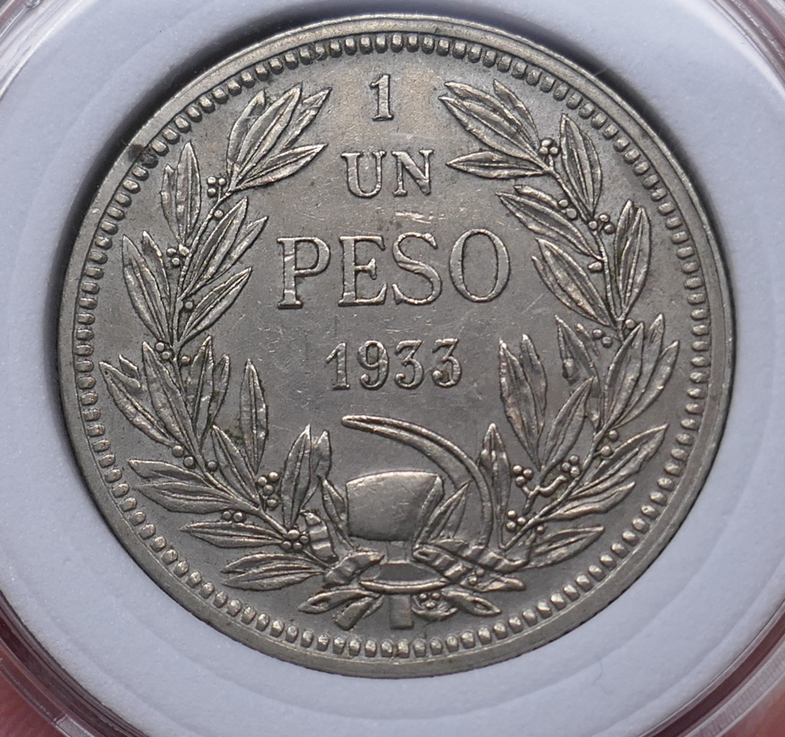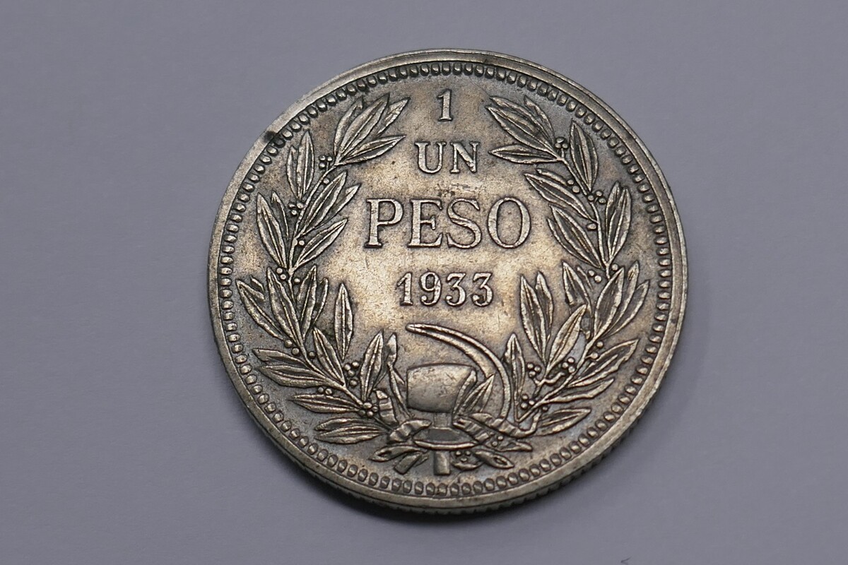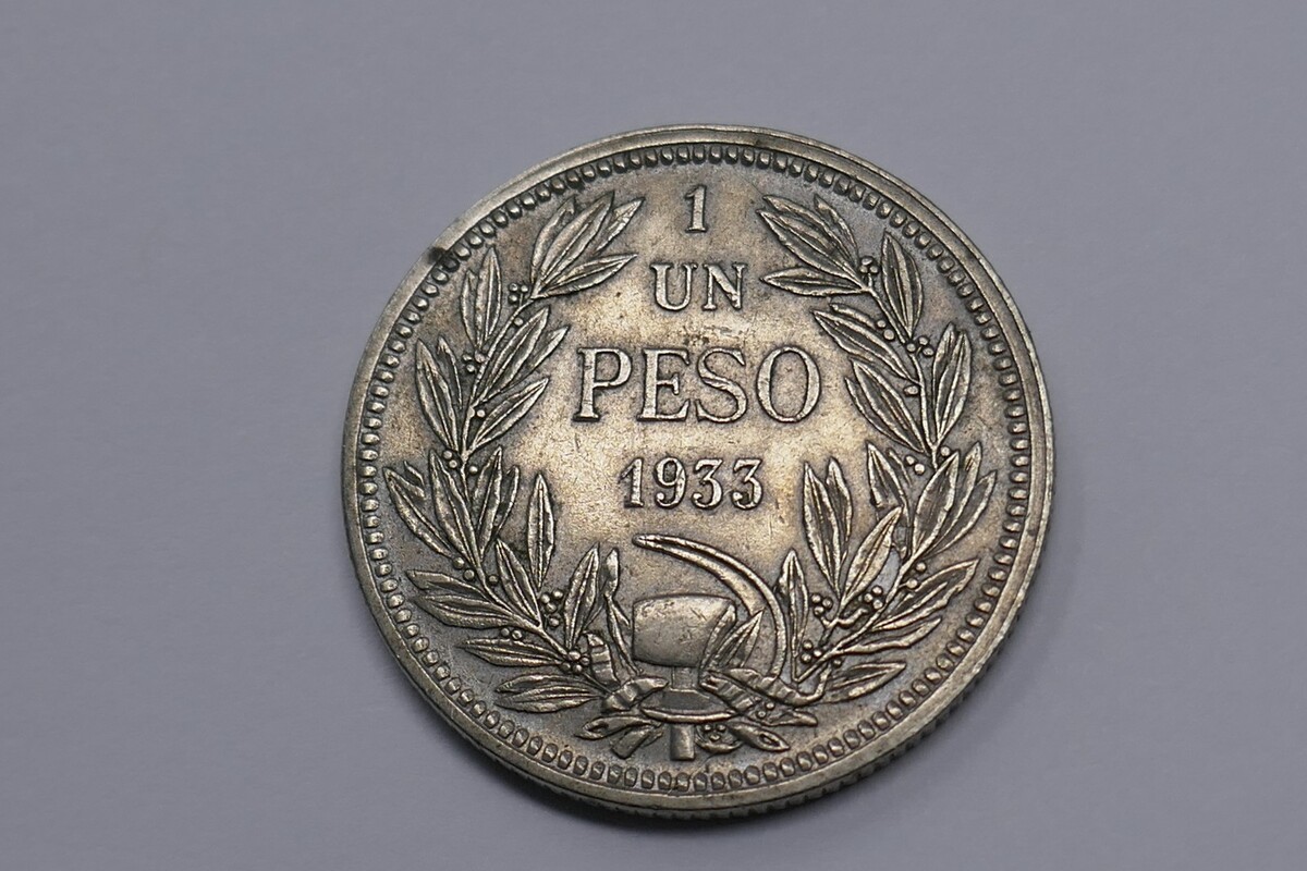 Chile 1933 Un 1 Peso Copper-nickel Coin
